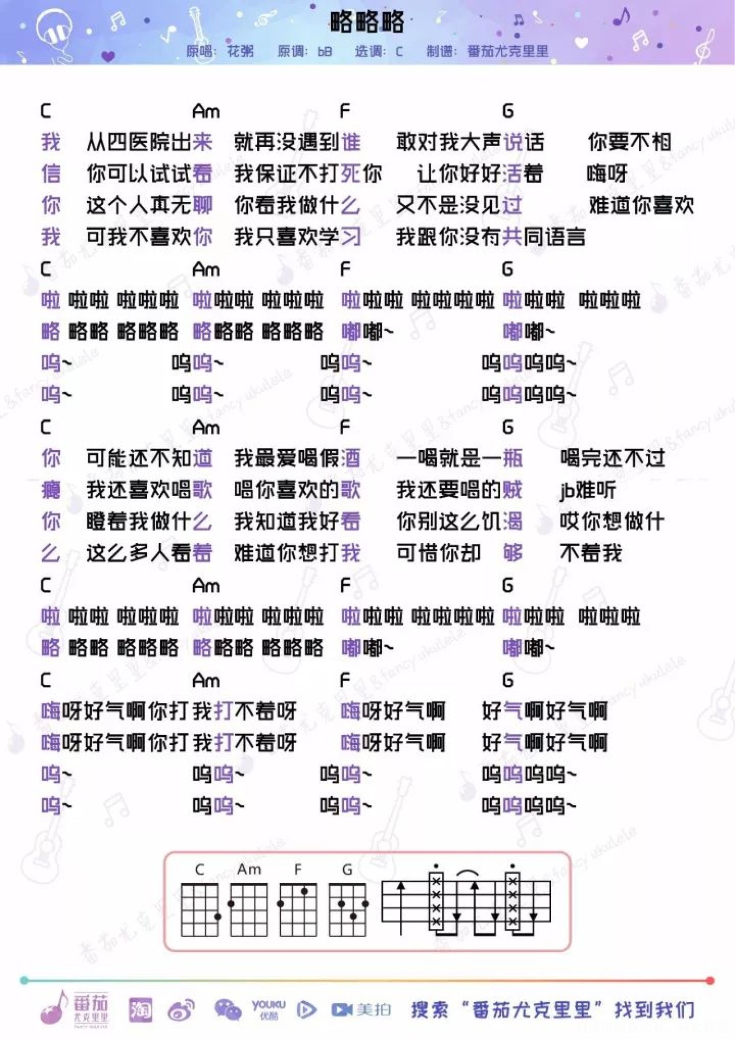 略略略尤克里里谱 - 花粥
