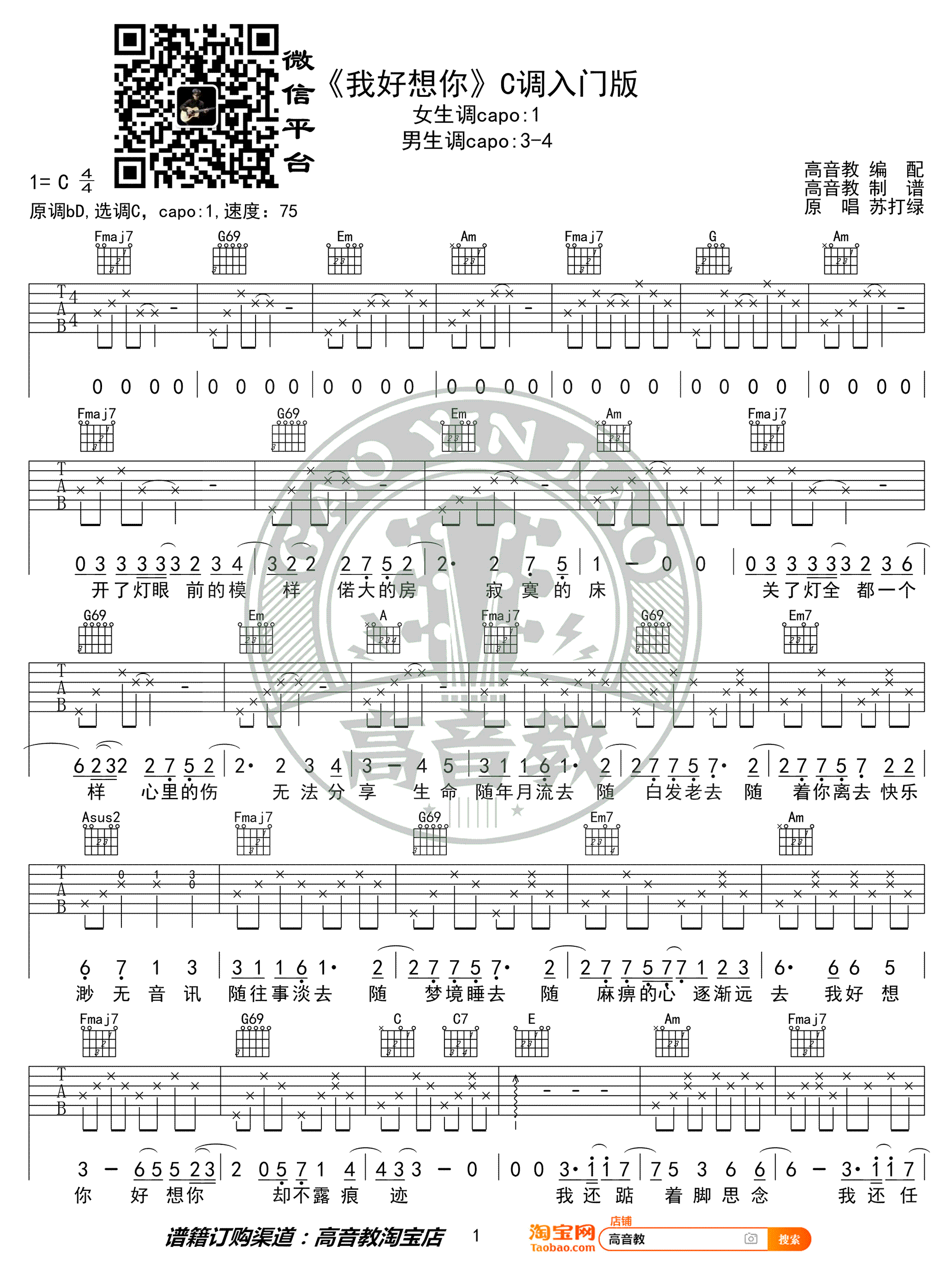 曲谱介绍: 《我好想你》吉他谱,苏打绿吴青峰演唱的一首走心伤感情歌情歌,电影《小时代》主题曲,我好想你六线谱,C调指法入门版编配,女生调夹一品,男生调夹3-4品。感谢高音教出品,吉他源整理分享。