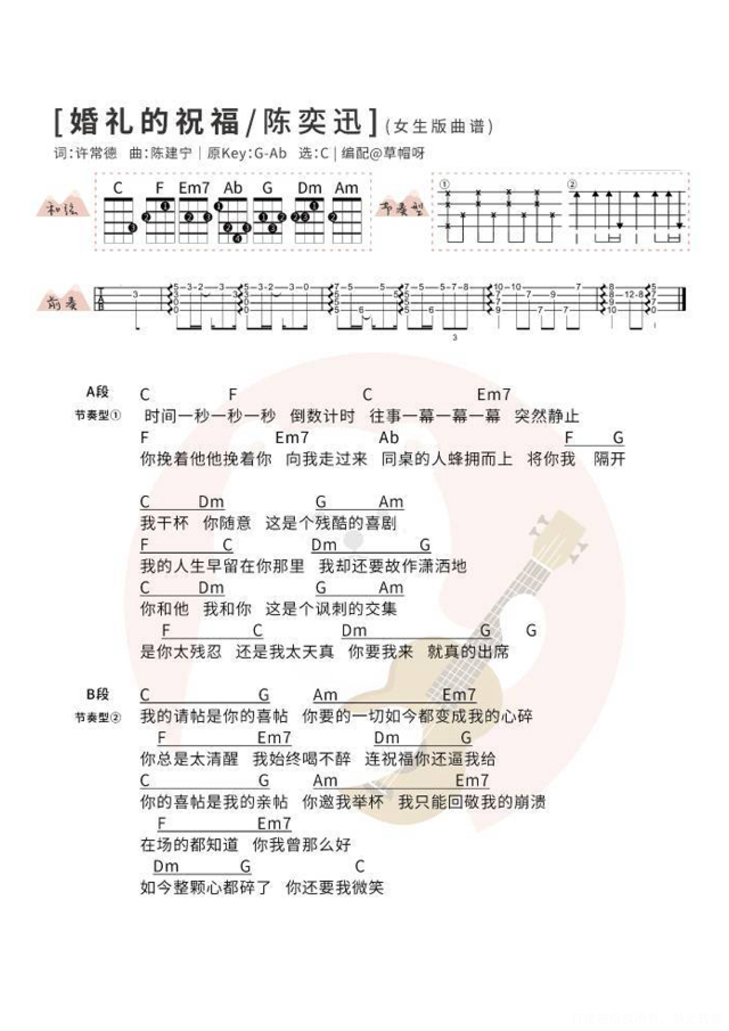 婚礼的祝福尤克里里谱 - 陈奕迅