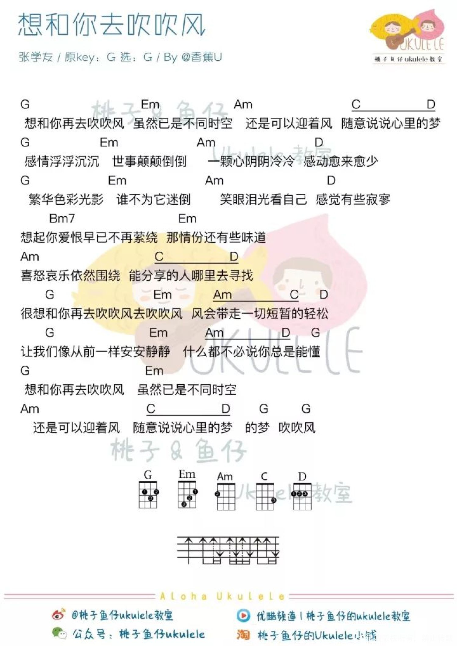 曲谱介绍: 《想和你去吹吹风》尤克里里弹唱谱