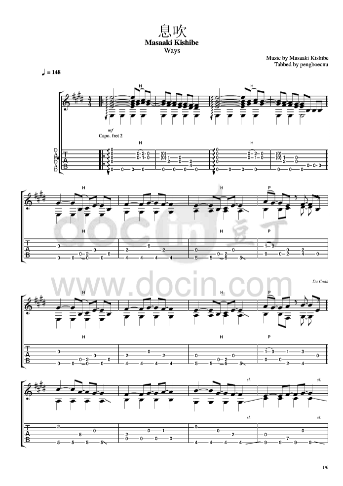 息吹吉他谱 - 岸部真明 - 吉他独奏谱