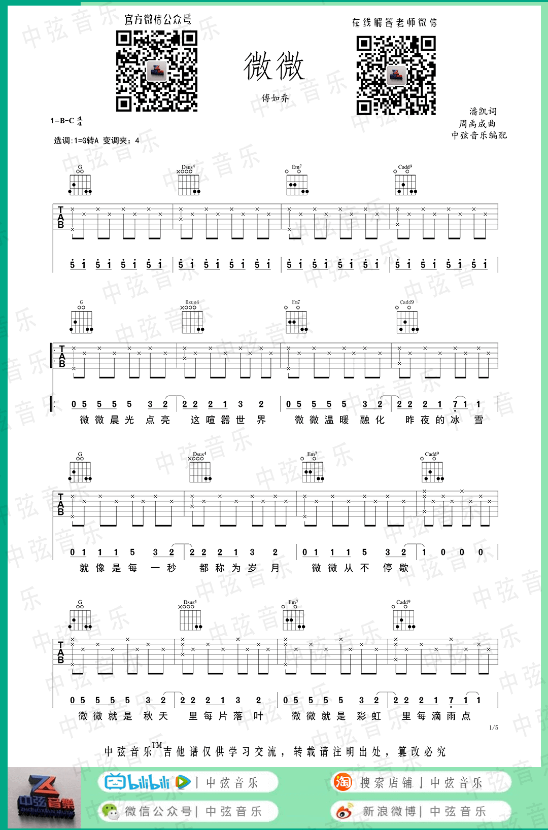 琴谱网为您精心推荐 微微 高清图谱