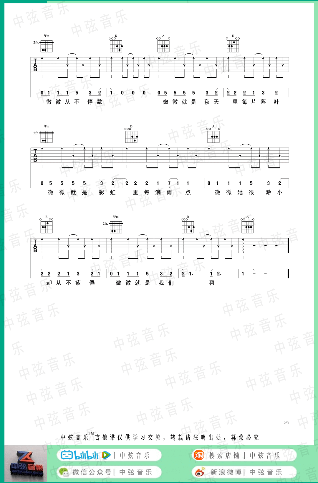 当前位置:琴谱网>吉他弹唱>微微
