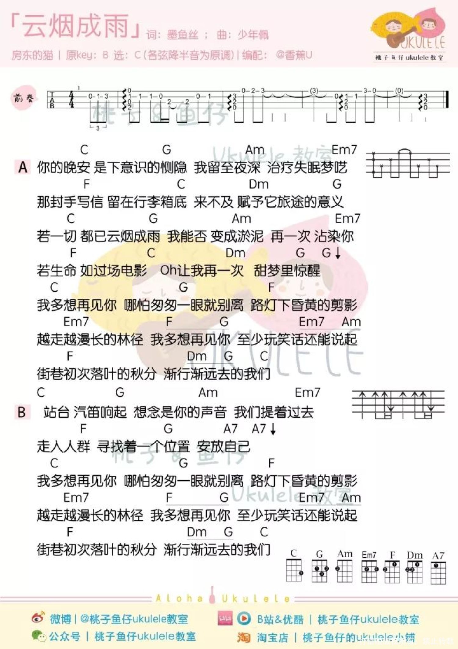 云烟成雨尤克里里谱 - 房东的猫