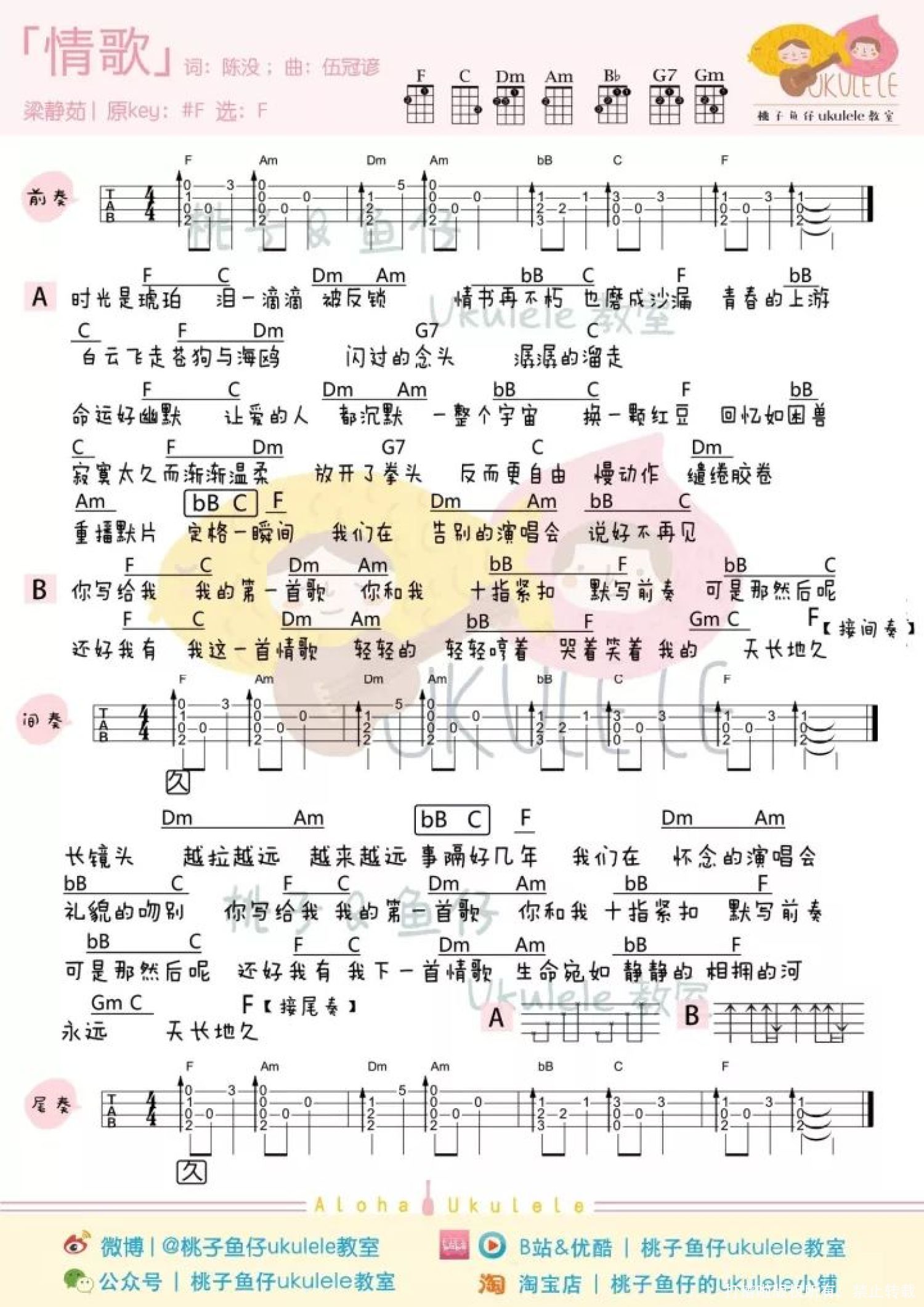 当前位置:琴谱网>尤克里里>情歌