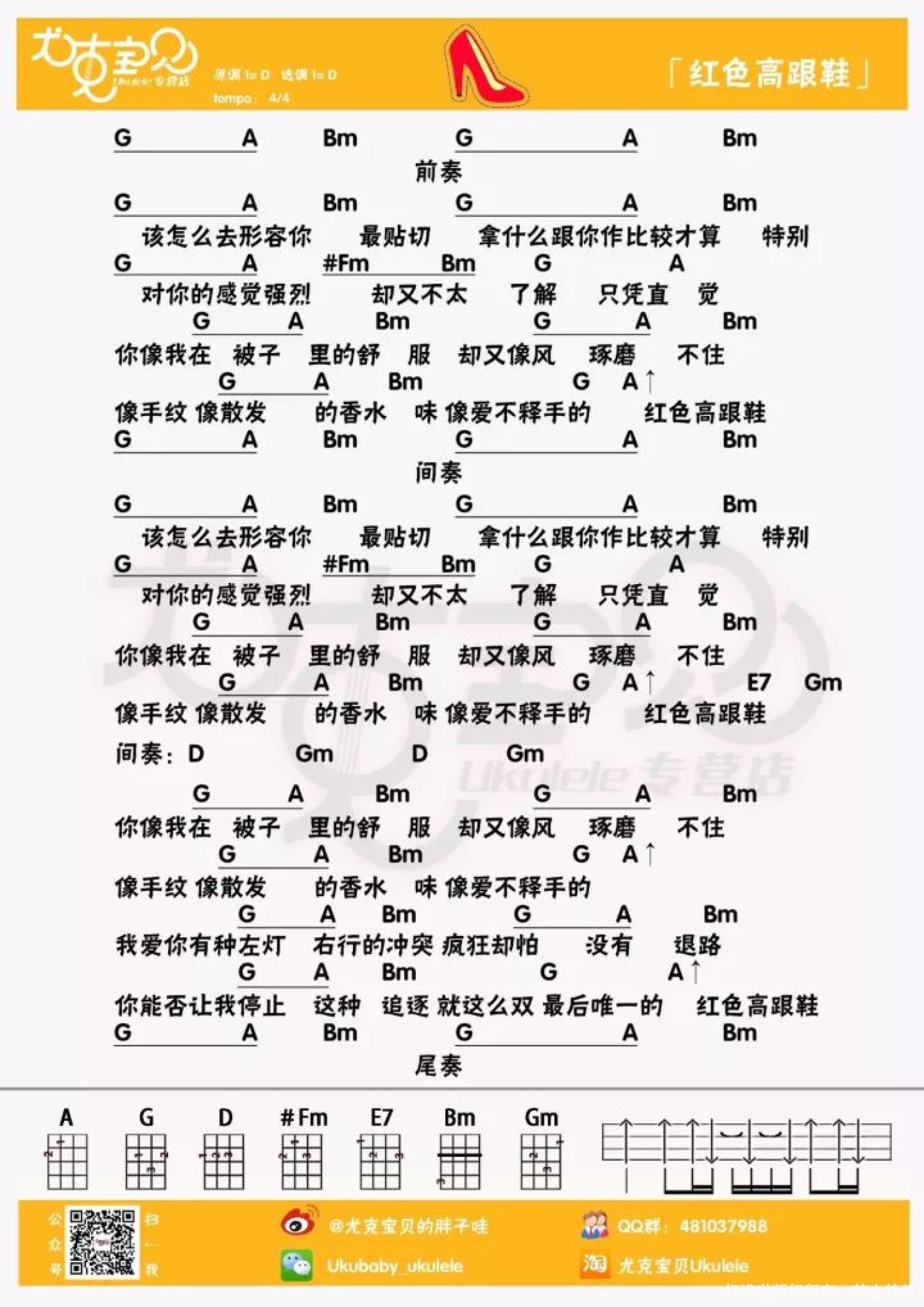 当前位置:琴谱网>尤克里里>红色高跟鞋