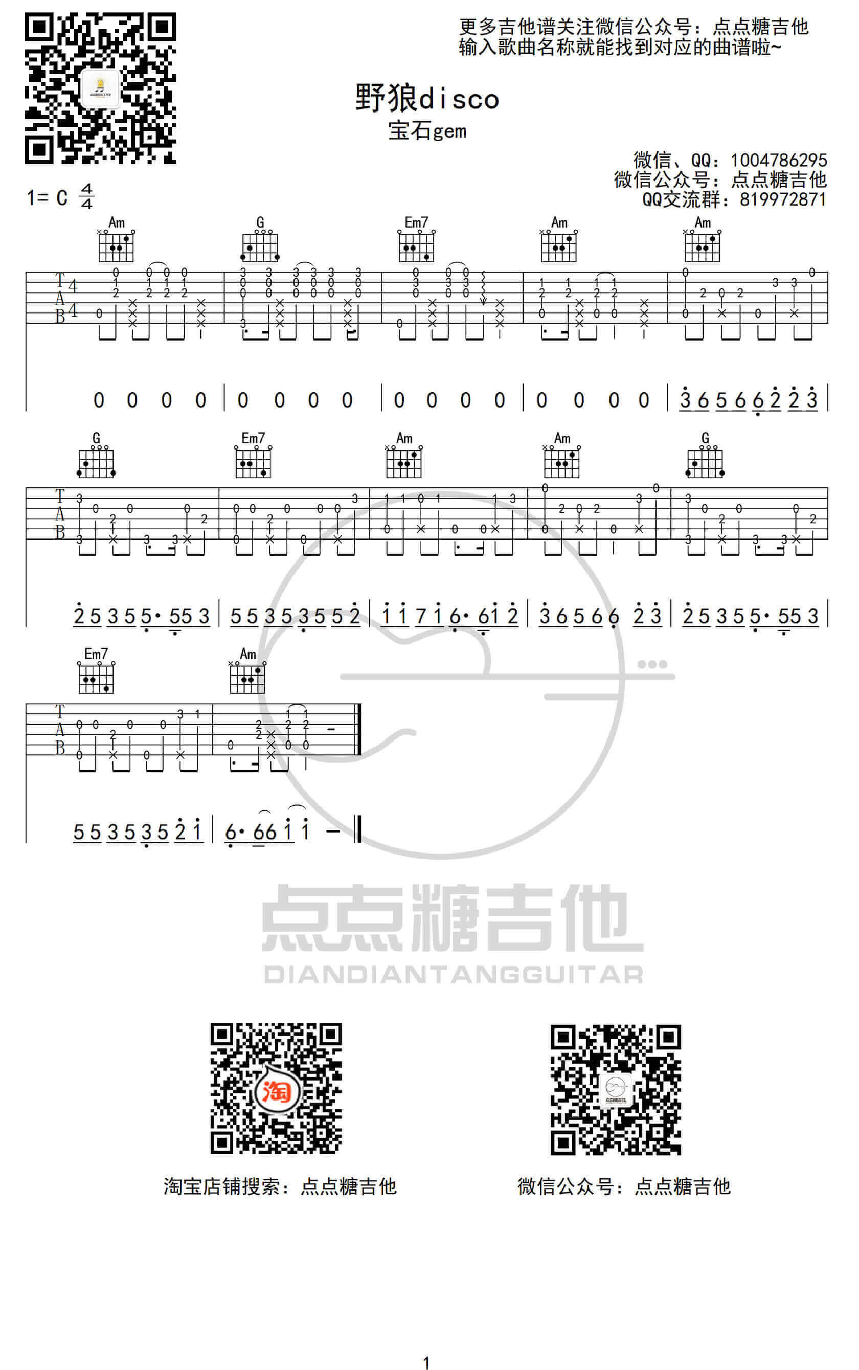 野狼disco吉他谱 - 宝石gem - 吉他独奏谱