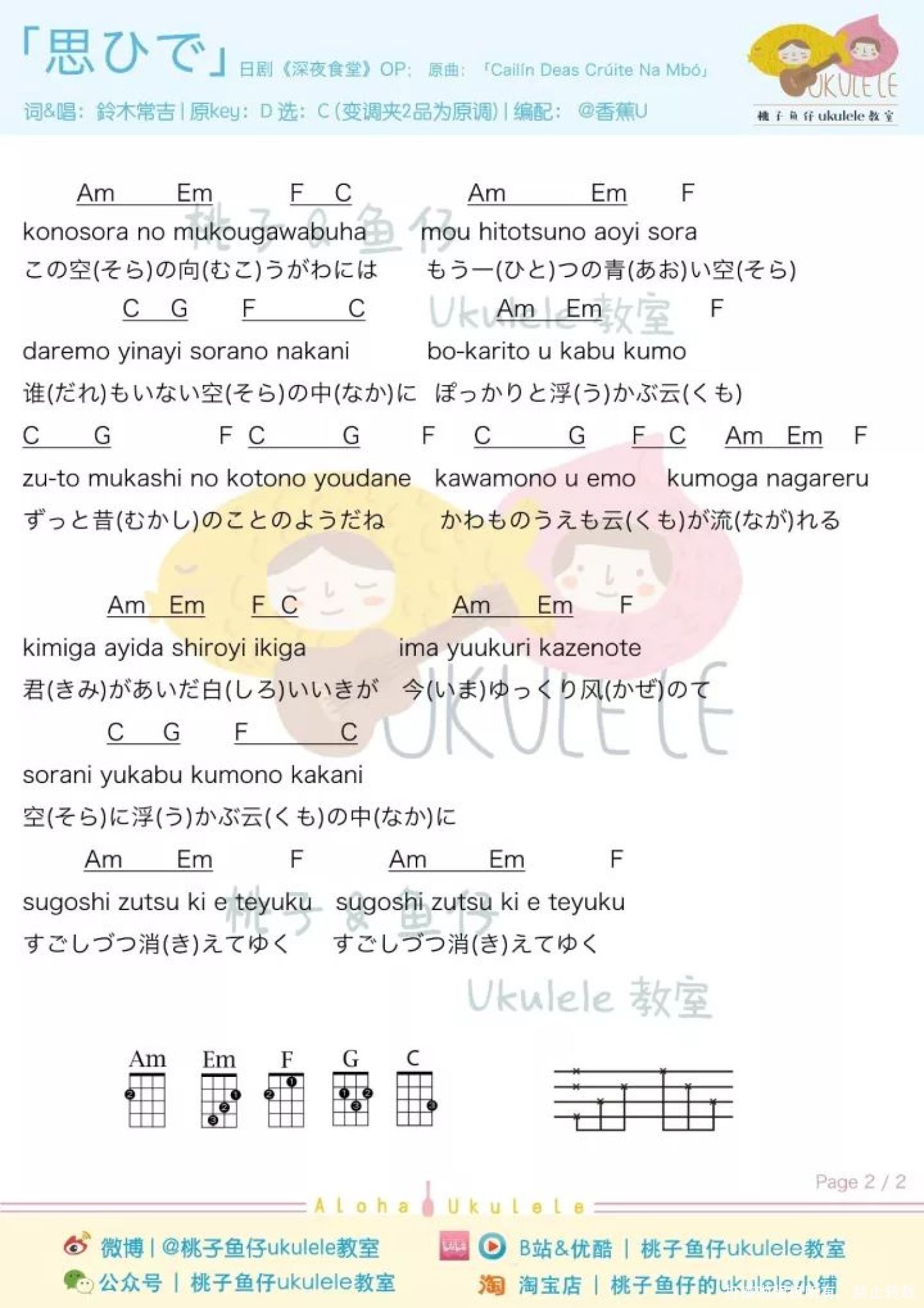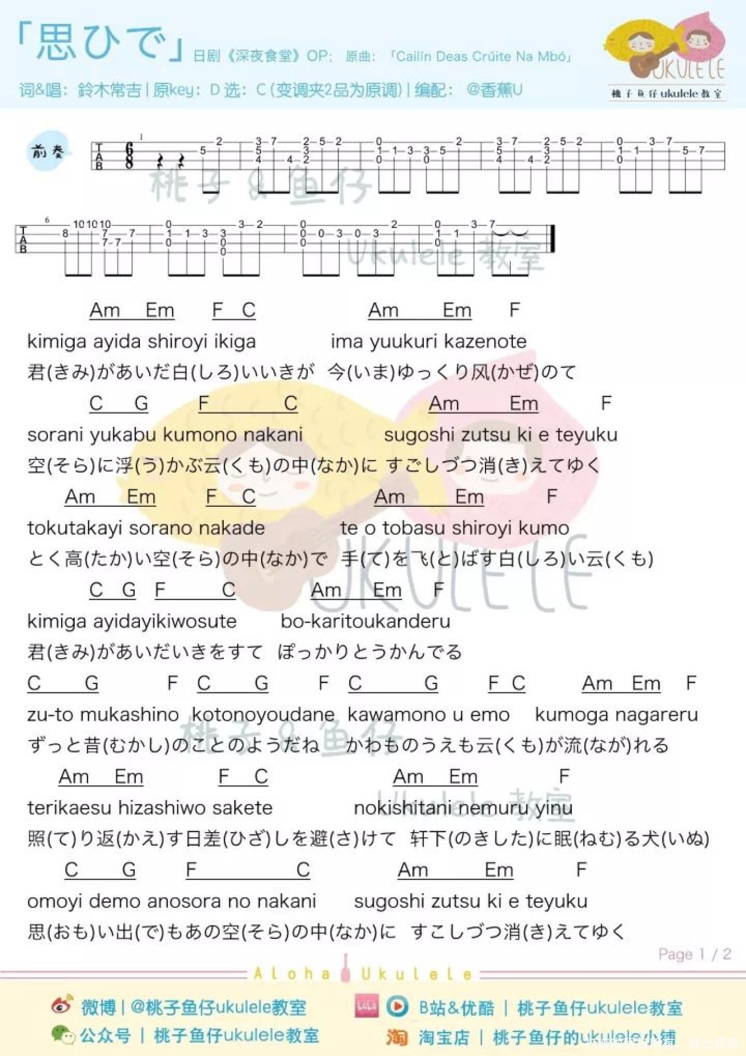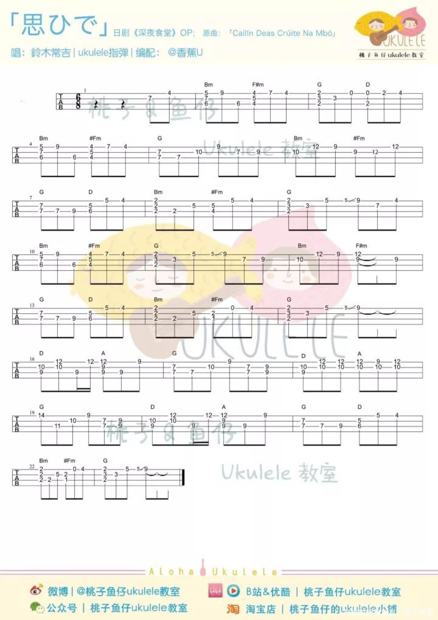 曲谱介绍: “一天结束,人们赶着回家之时,正是我的一天开始之时,营业时间从午夜十二点到早晨七点,人们称之为深夜食堂。菜单只有这些,如果客人点其他的,我会尝试去做,这是我的经营理念。你问我有客人吗?还真不少呢。” —日剧《深夜食堂》每一集开始时, 食堂店主小林薰的固定开场白。 深夜食堂那小小的四方屋子 储存着我们对于日式居酒屋 最温情的回忆和期许 每个夜晚,店主掀起门帘,低沉的嗓音轻声问好。 明明说的是“欢迎光临”, 却总令人产生是“欢迎回家”的错觉。 不经意间,便被美食和故事治愈。 尤克里里吉他指弹合奏   尤克里里指弹教学    曲谱 Uku It 1、指弹谱   2、弹唱谱