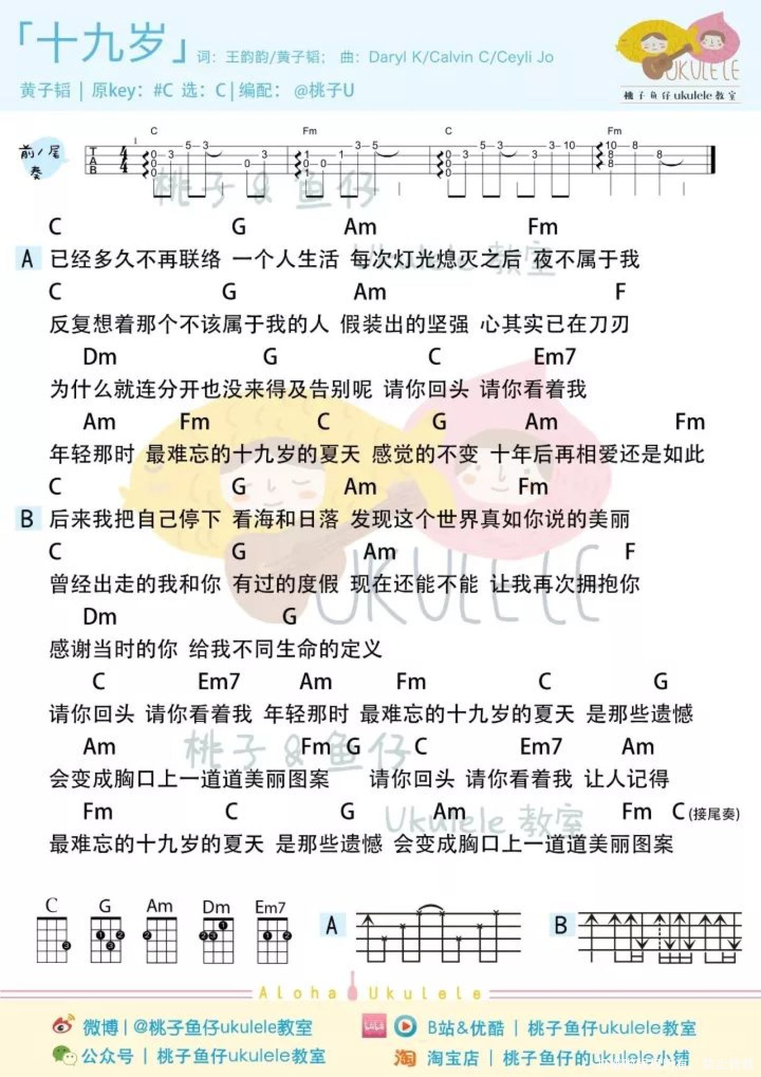 曲谱介绍: 《十九岁》尤克里里弹唱谱
