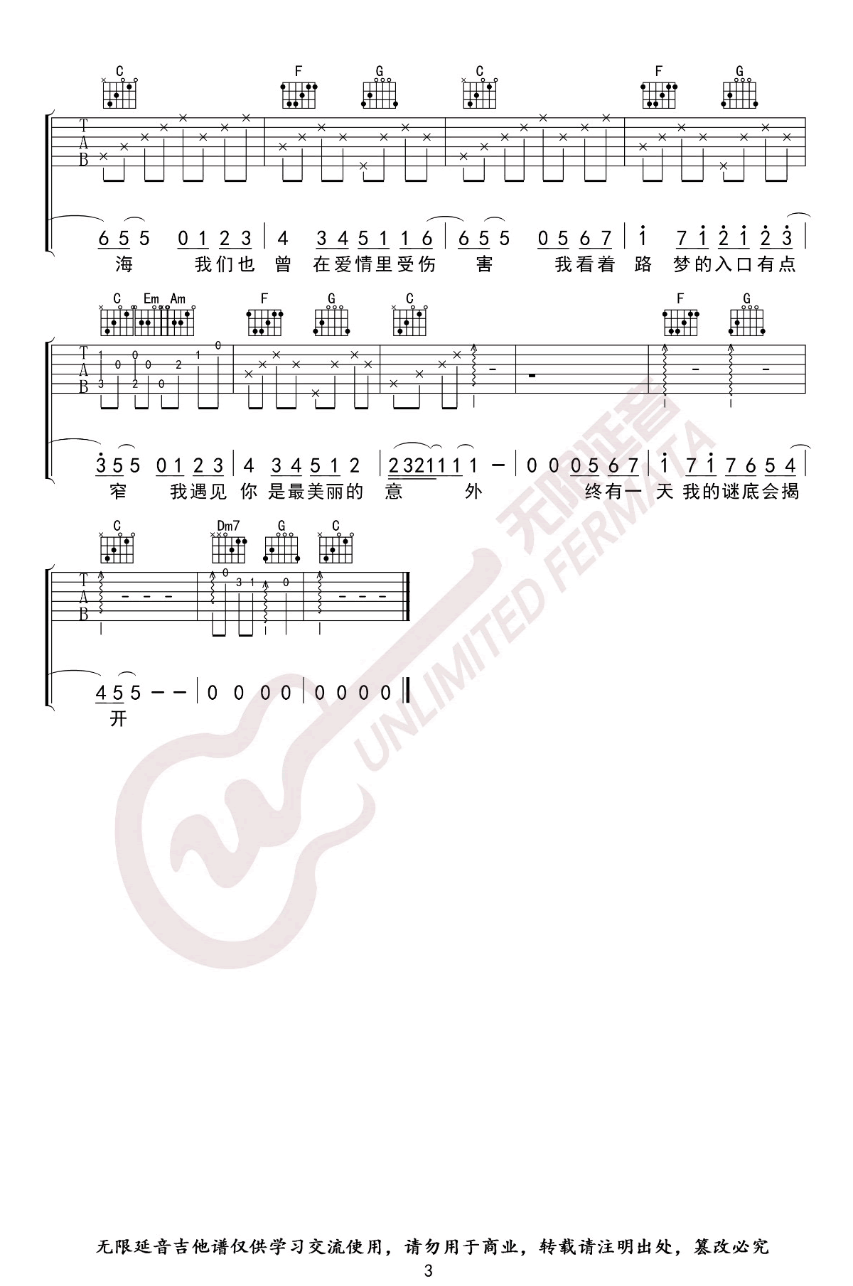 当前位置:琴谱网>吉他弹唱>遇见