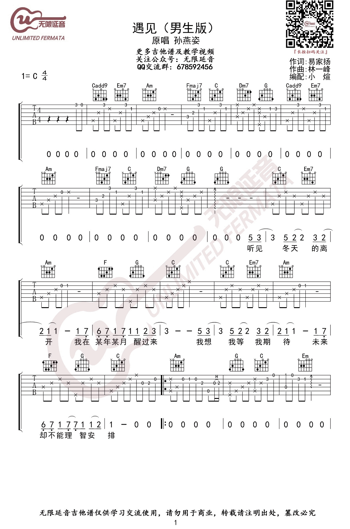 遇见吉他谱 - 孙燕姿 - C调吉他弹唱谱
