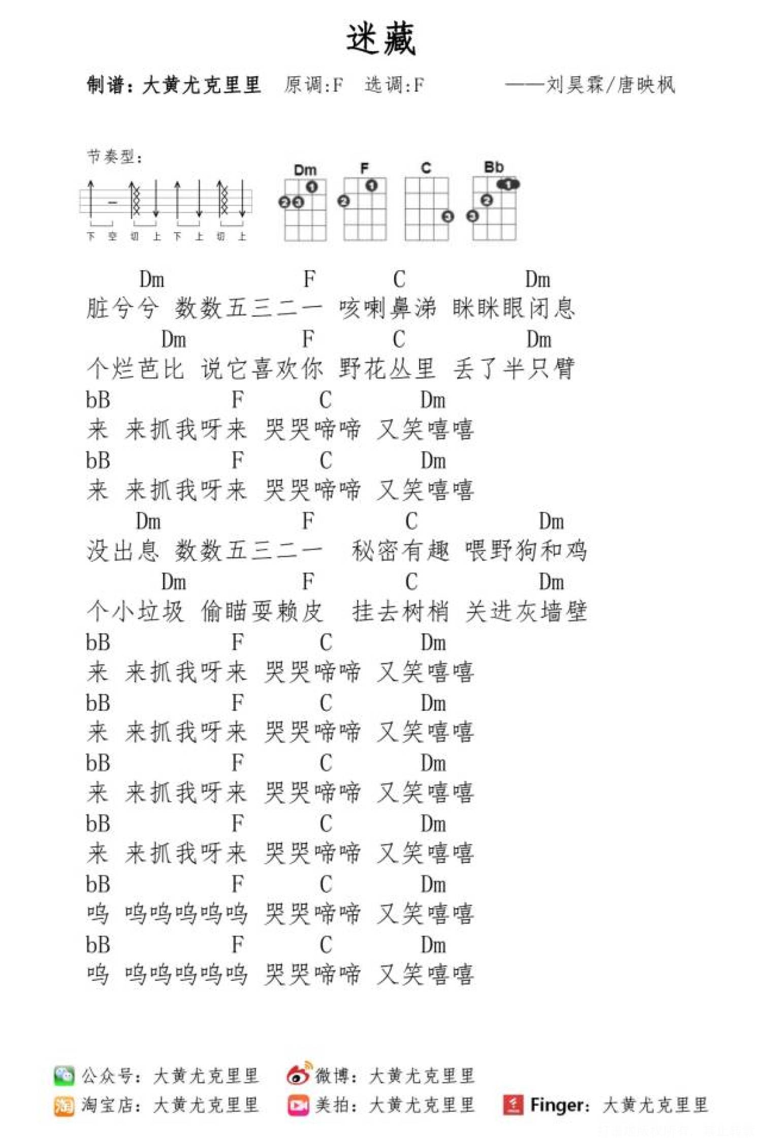 曲谱介绍: 《迷藏》尤克里里谱
