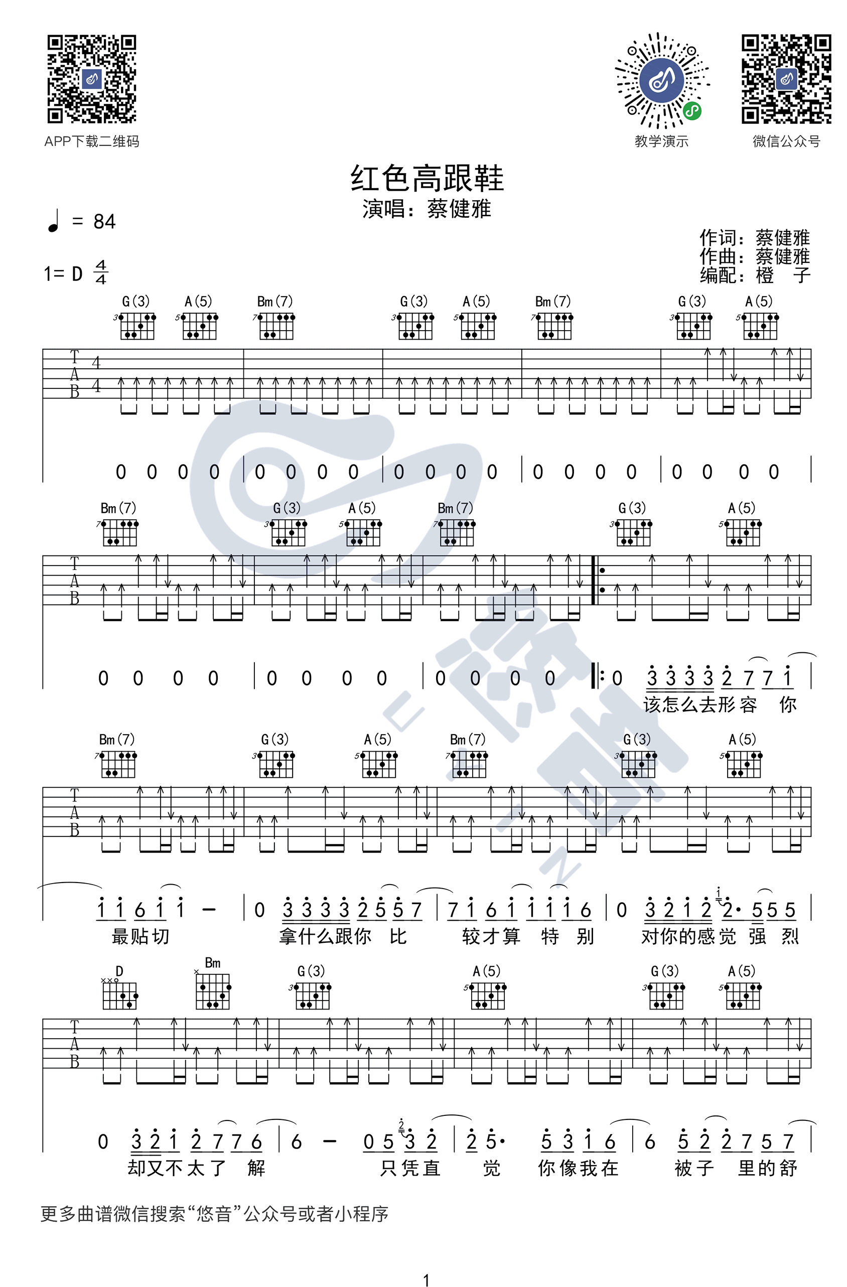 红色高跟鞋吉他谱 - 蔡健雅 - D调吉他弹唱谱