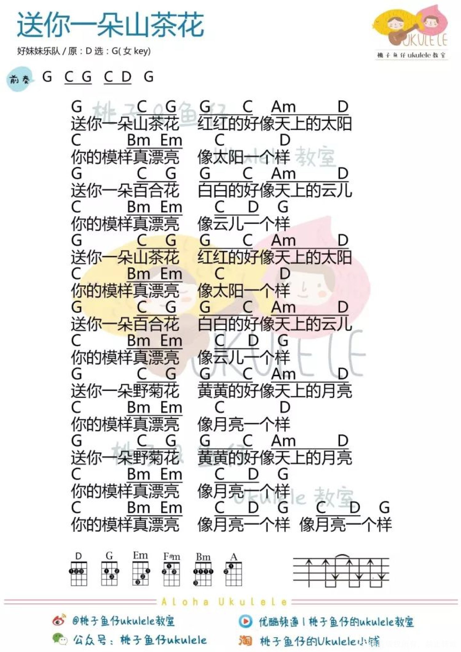 送你一朵山茶花尤克里里谱 - 好妹妹乐队