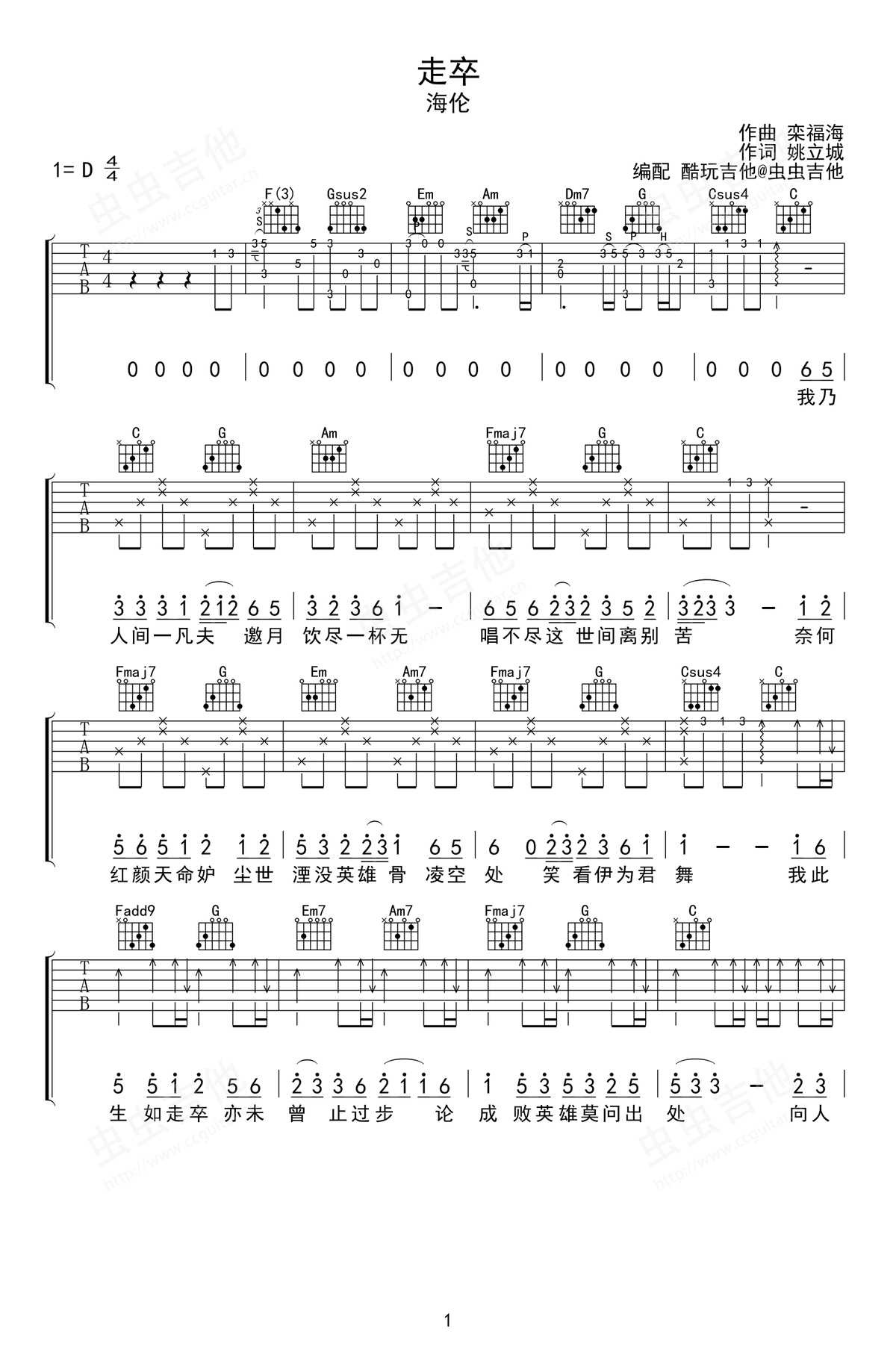 走卒吉他谱 - 海伦 - D调吉他弹唱谱