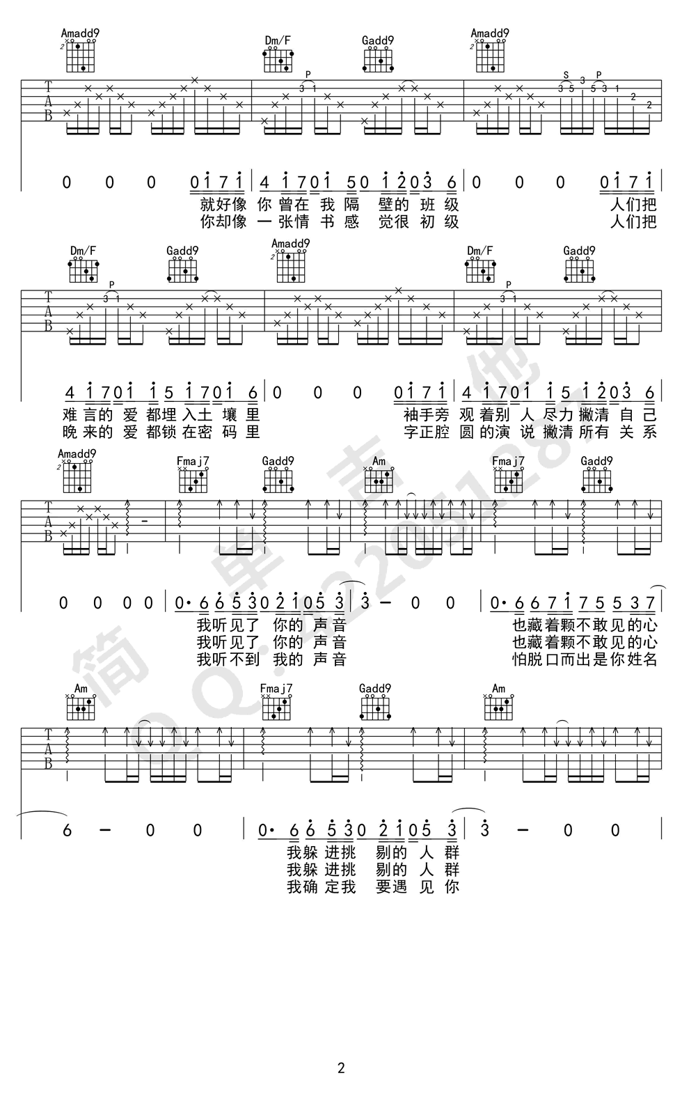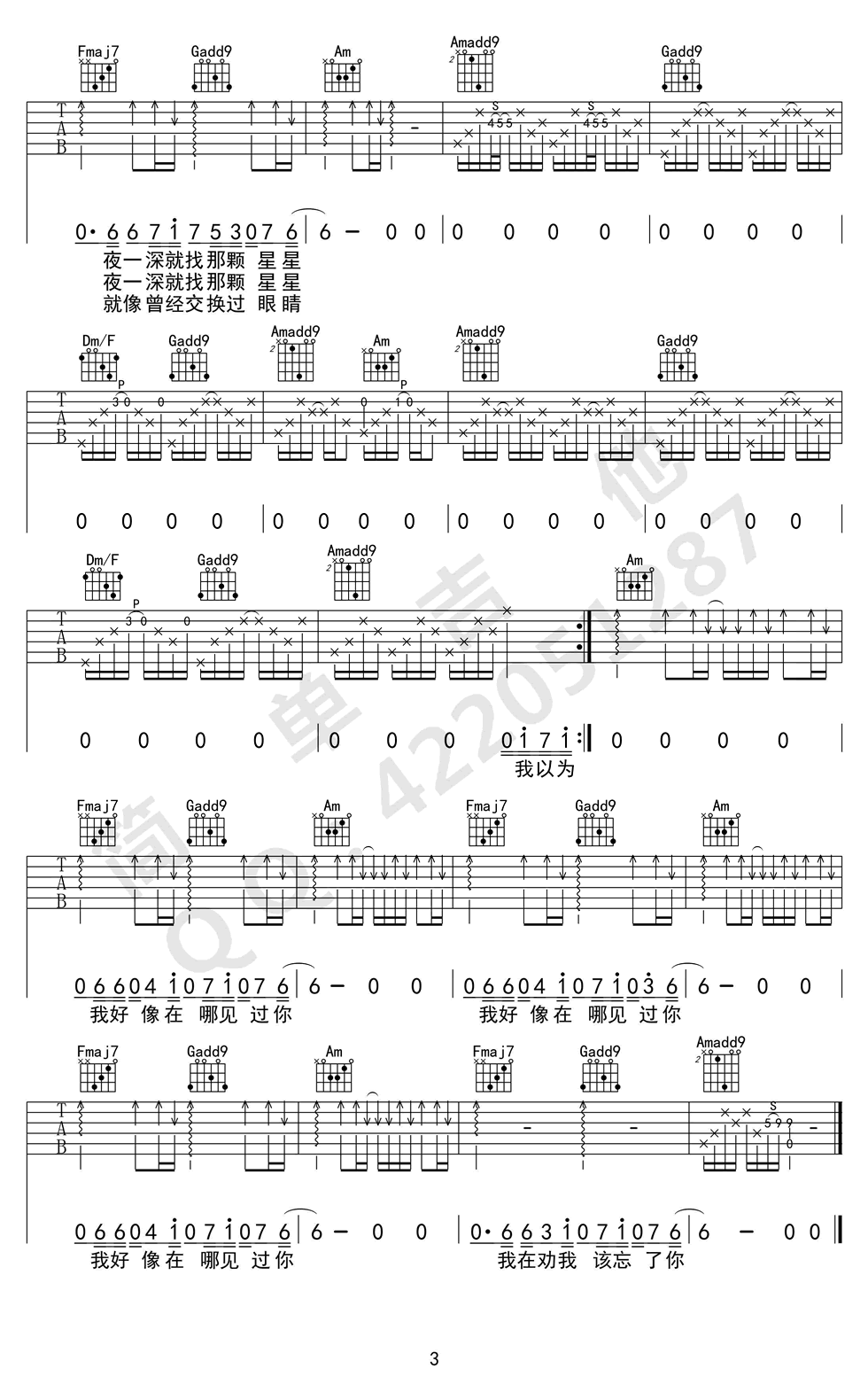 我好像在哪见过你吉他谱 - 薛之谦 - 吉他弹唱谱