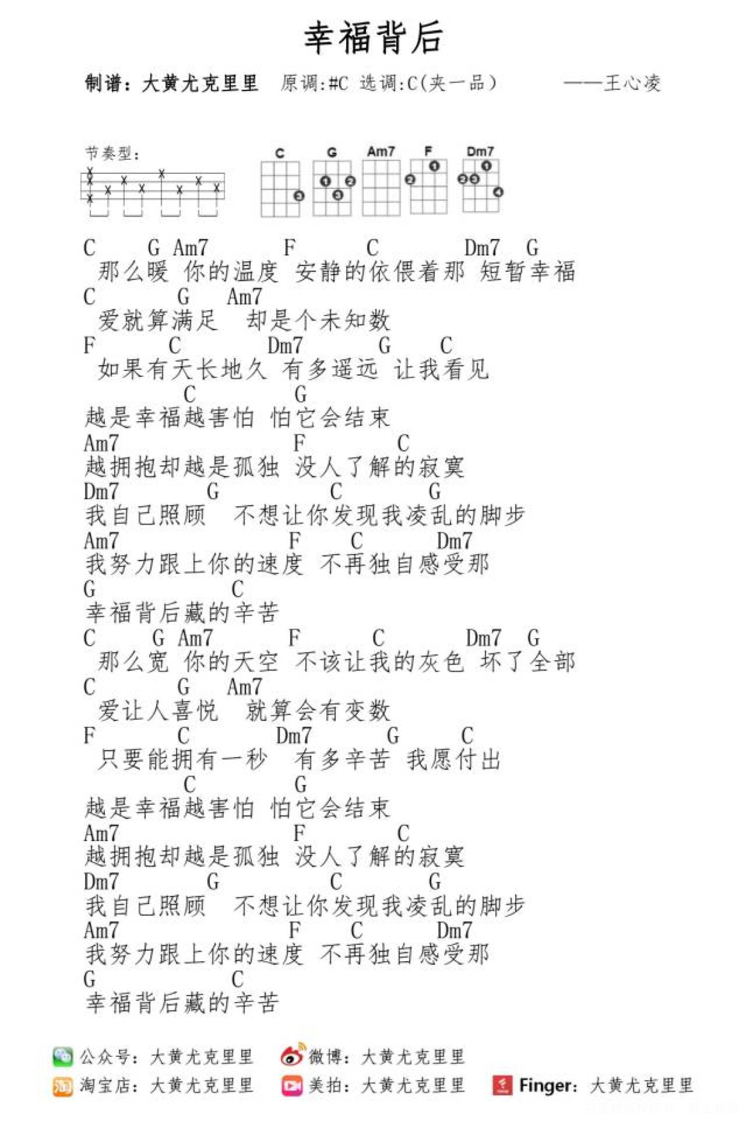 曲谱介绍: 《幸福背后》尤克里里谱