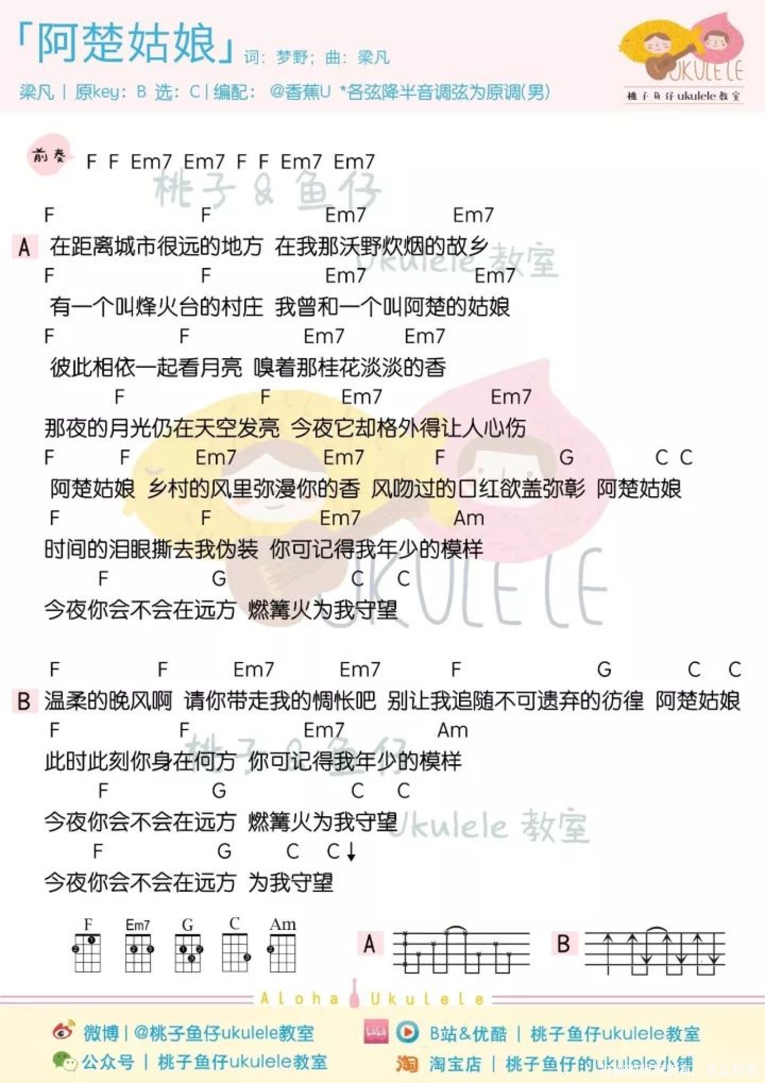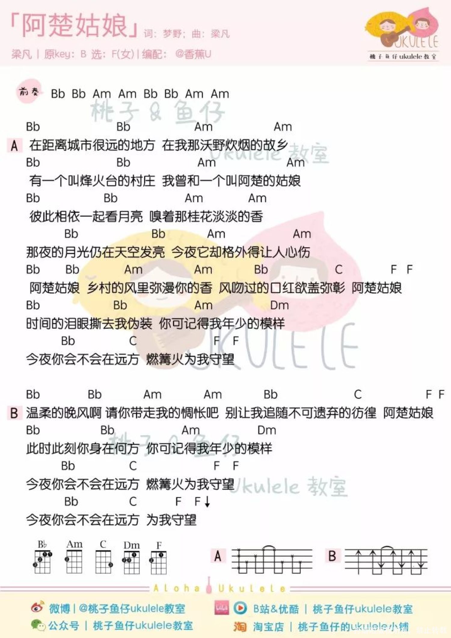 阿楚姑娘尤克里里谱 - 梁凡/袁娅维