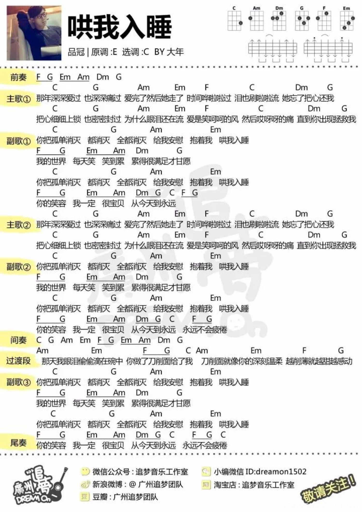 曲谱介绍: 《哄我入睡》尤克里里谱