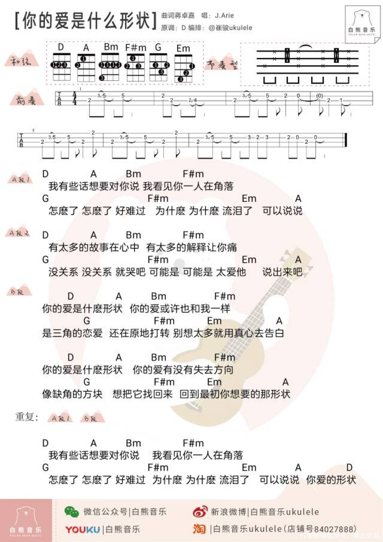 你的爱是什么形状尤克里里谱 - J.Arie/雷琛瑜