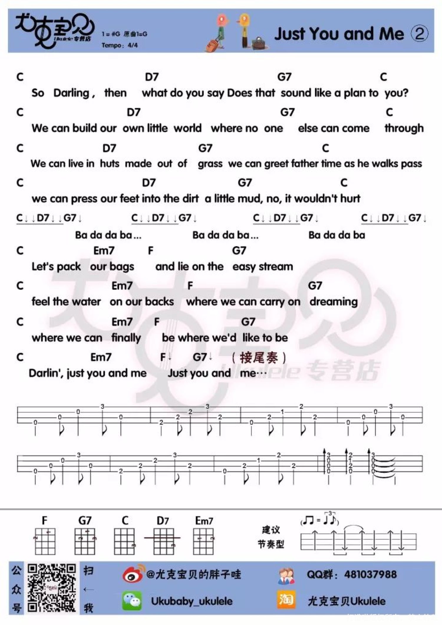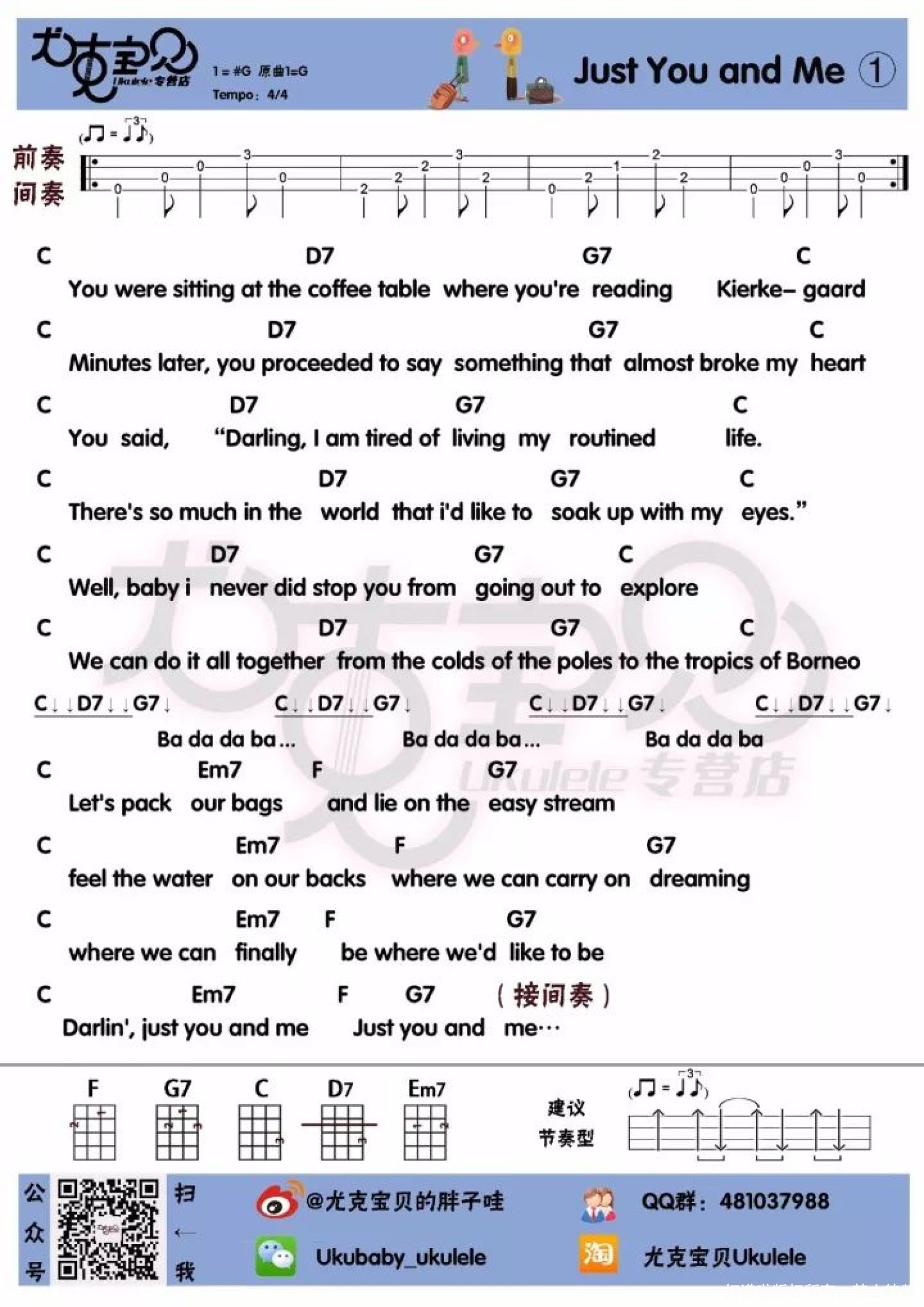 曲谱介绍: 一点开,听到就嘴角忍不住上扬的旋律 ●「JUST YOU AND ME」是选自马来西亚歌手ZEE AVI季小薇2009年发行的同名专辑,歌曲用UKULELE弹奏、带有新纽奥良Swing Jazz风味。 ●身材娇小却在YouTube上累积了超过150万网友,有人称她像是爵士名伶Billie Holiday跟民谣歌手Cat Power的接班人,或是用她老品杰克强森比喻为女版杰克强森,其实也并非夸饰法。 ● Zee Avi用拿手的吉他、Ukulele,搭配上独特慵懒舒服的嗓音,打造出自成一格的音乐氛围。一听到嘴角就忍不住上扬的旋律 ● 「JUST YOU AND ME」简单的几个和弦和轻快的Jazz风,好听又好弹,一起来试试!   Zee Avi Zee Avi 季小薇出生在马来西亚砂拉越美里省的一个小镇上。17岁时她经常把自己锁在房间学弹吉他,一弹就是几小时。由于去伦敦学时装设计的缘故,吉他学习搁浅了四年。重回吉隆坡时,季小薇重新拾起乐器并开始创作音乐,随乐队演出。22岁生日前,季小薇将自己创作片段上传到YouTube,原本只是让好友观赏后就要删除,没想到却收到路过网友们滚雪球般的热情回应。后来The White Stripes经纪人Ian Montone的引荐下,Zee Avi成为杰克强森自创音乐厂牌Brushfire Records旗下唯一的创作才女。并于2009年推出了同名专辑。   弹唱曲谱-C调
