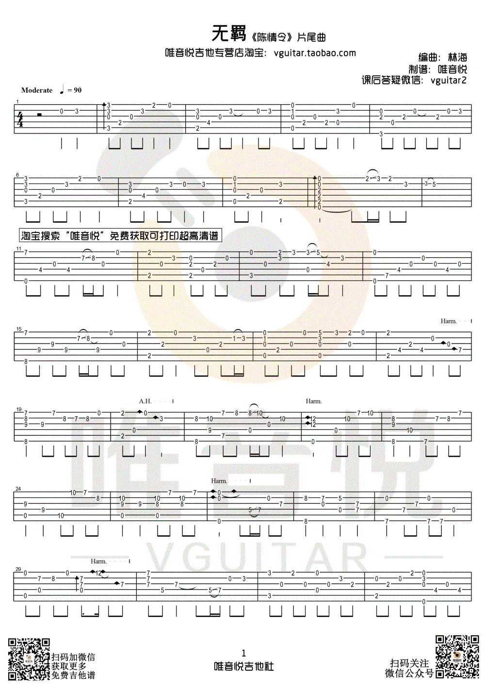 曲谱介绍: 无羁指弹谱,电视剧《陈情令》片尾曲,无羁吉他独奏谱,唯音悦编配出品,随谱附上指弹吉他演示视频。本曲谱演奏难度其实还蛮大的,比初级指弹难上挺多的,会涉及到一些技巧还有跨把位的指法,而且指法重复段也较少,琴友们可以参照老师的演奏示范,配合曲谱练习。 吉他弹唱演示及视频教学