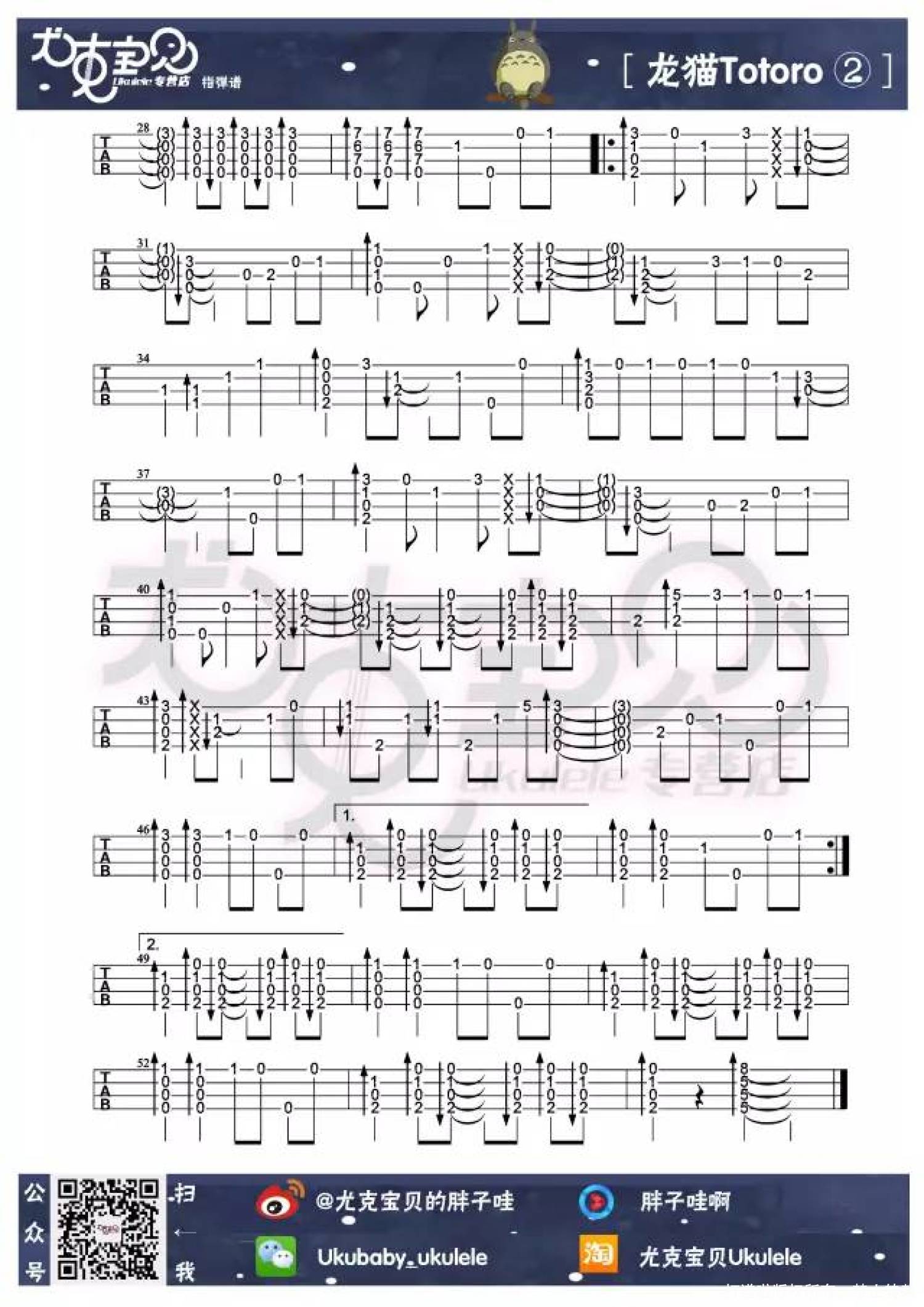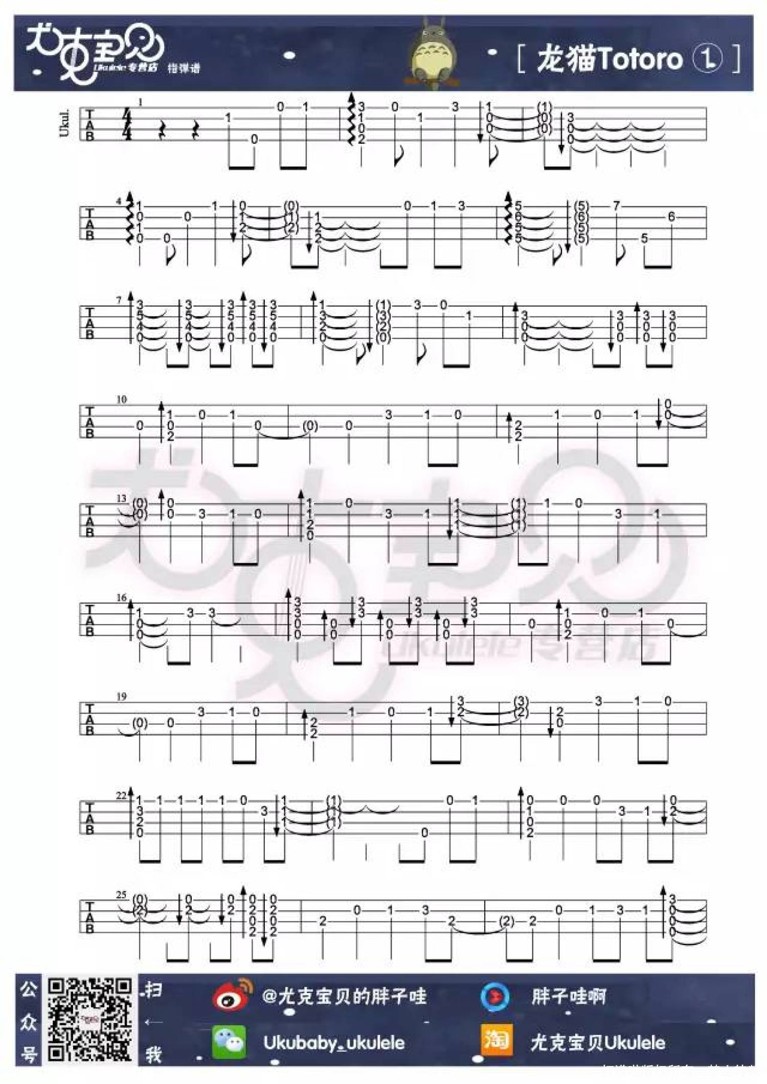 龙猫/豆豆龙Totoro尤克里里谱