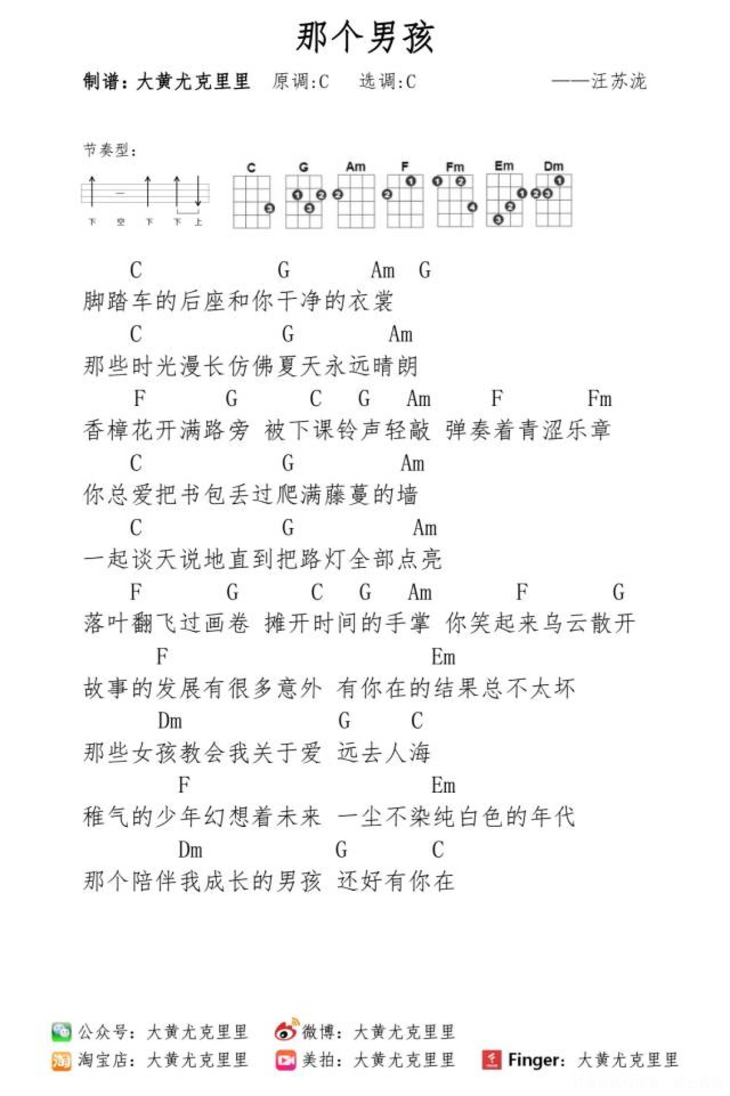 那个男孩尤克里里谱 - 汪苏泷