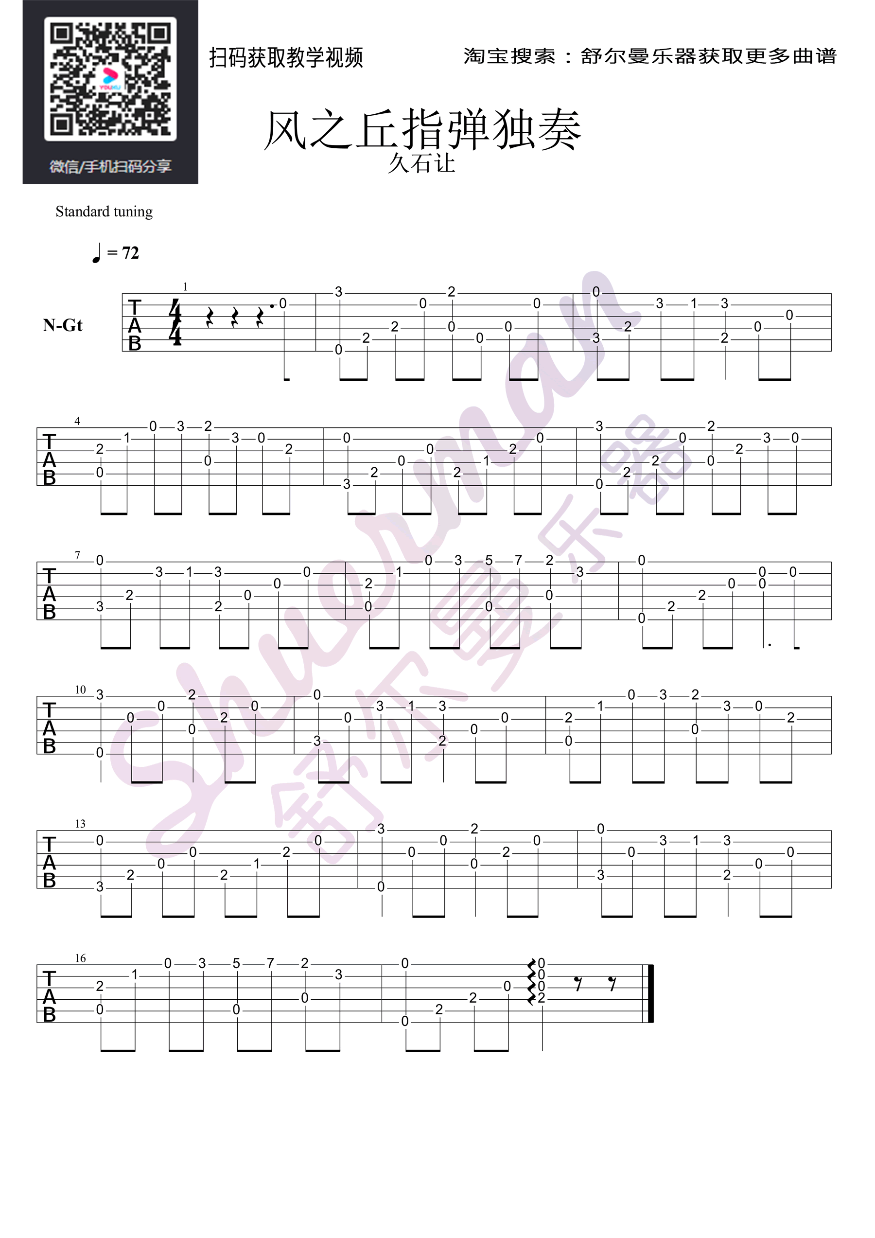 风之丘吉他谱 - 久石让 - 吉他独奏谱