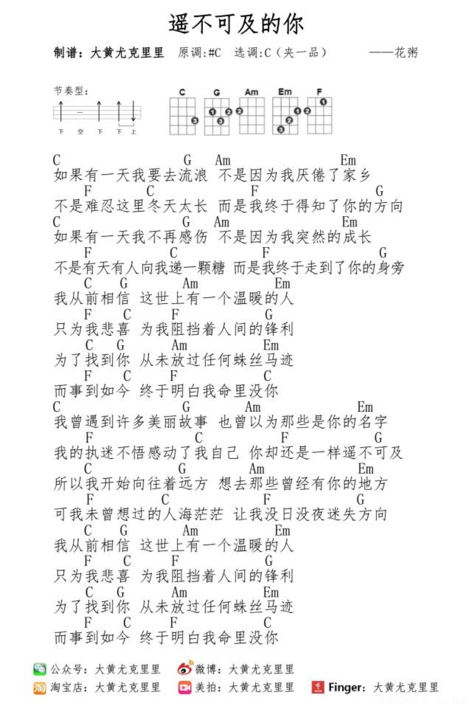 当前位置:琴谱网>尤克里里>遥不可及的你