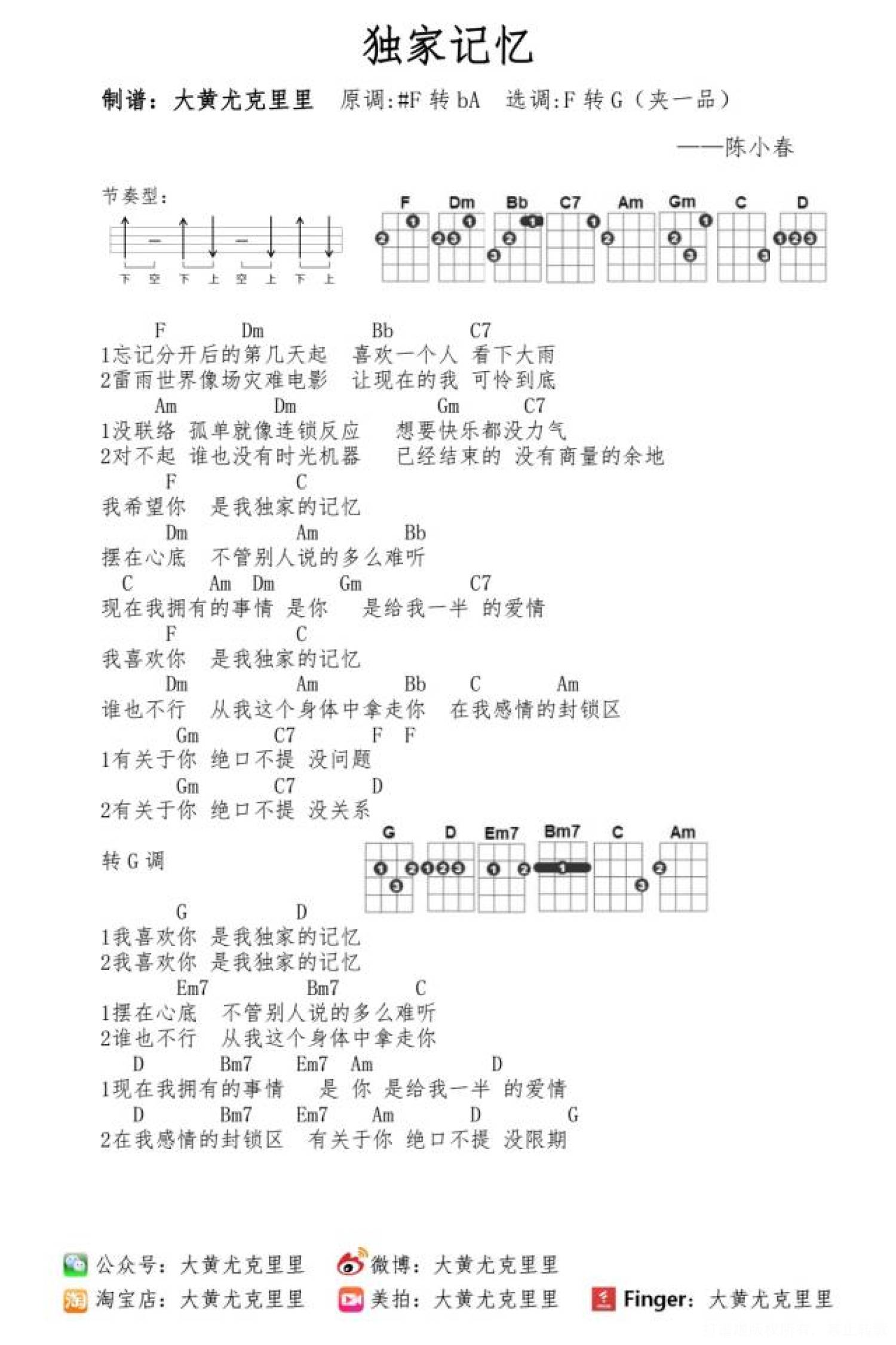 曲谱介绍: 《独家记忆》尤克里里弹唱谱