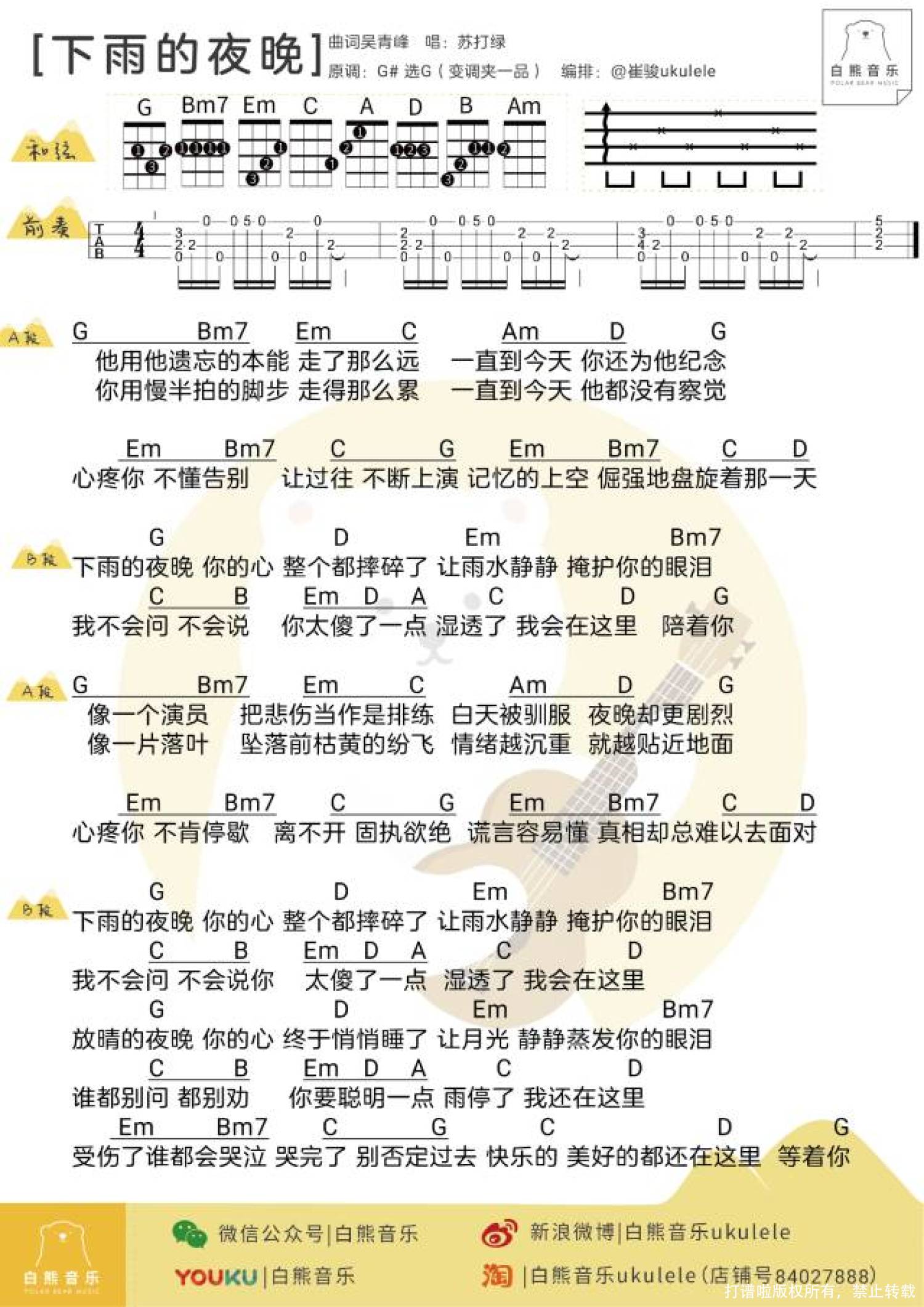 当前位置:琴谱网>尤克里里>下雨的夜晚
