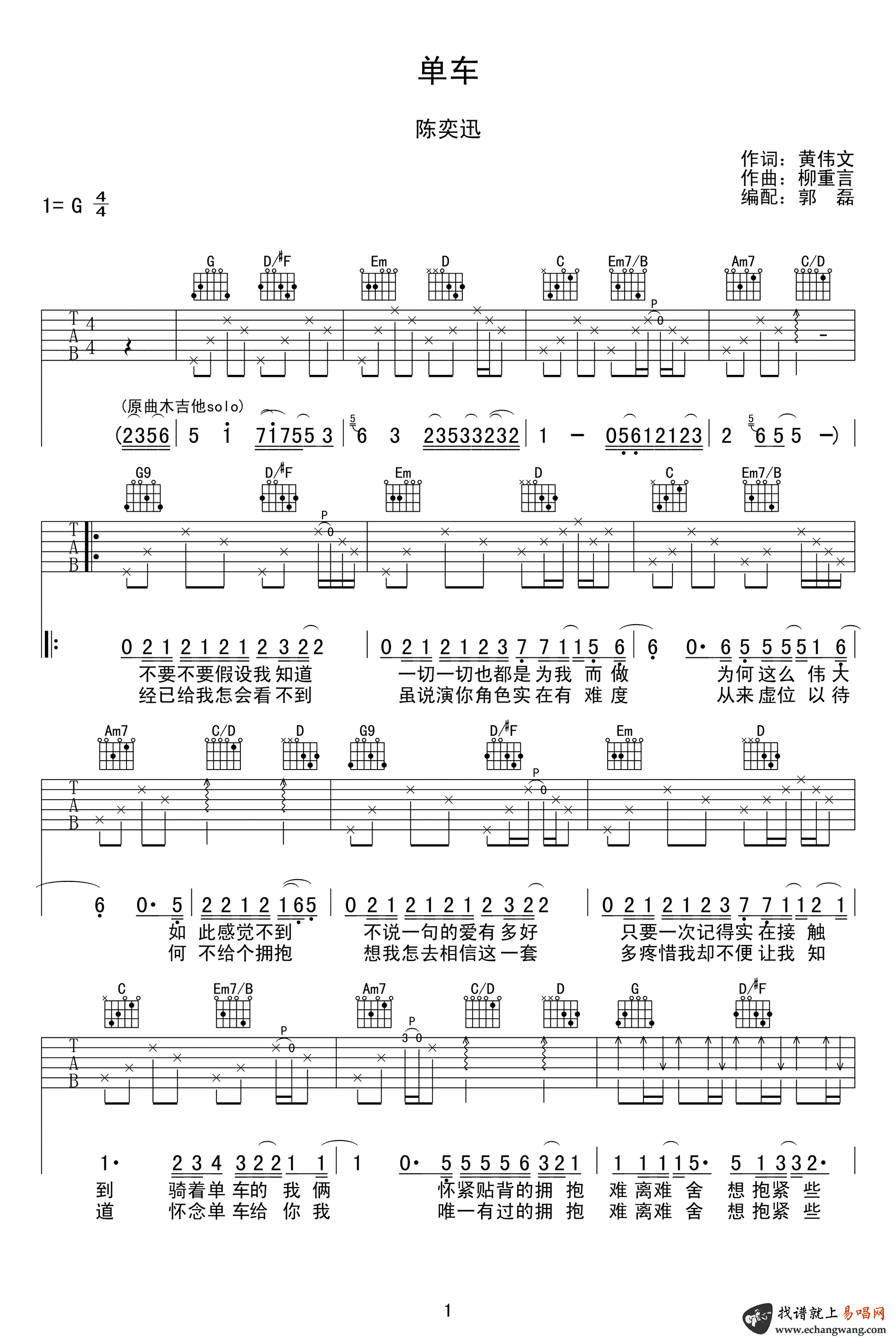 单车吉他谱 - 陈奕迅 - 吉他弹唱谱 - 原版