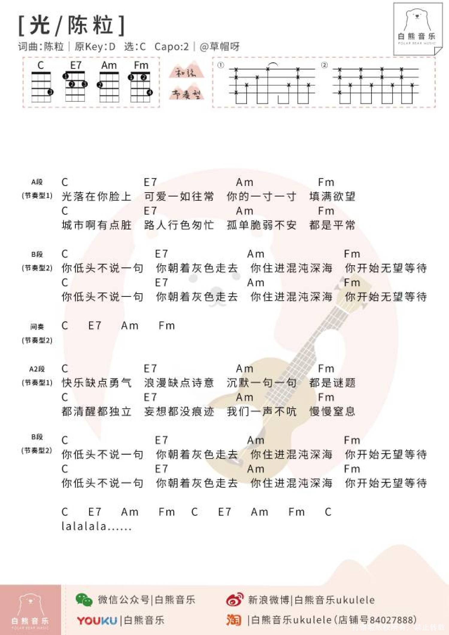 曲谱介绍: 《光》尤克里里弹唱谱