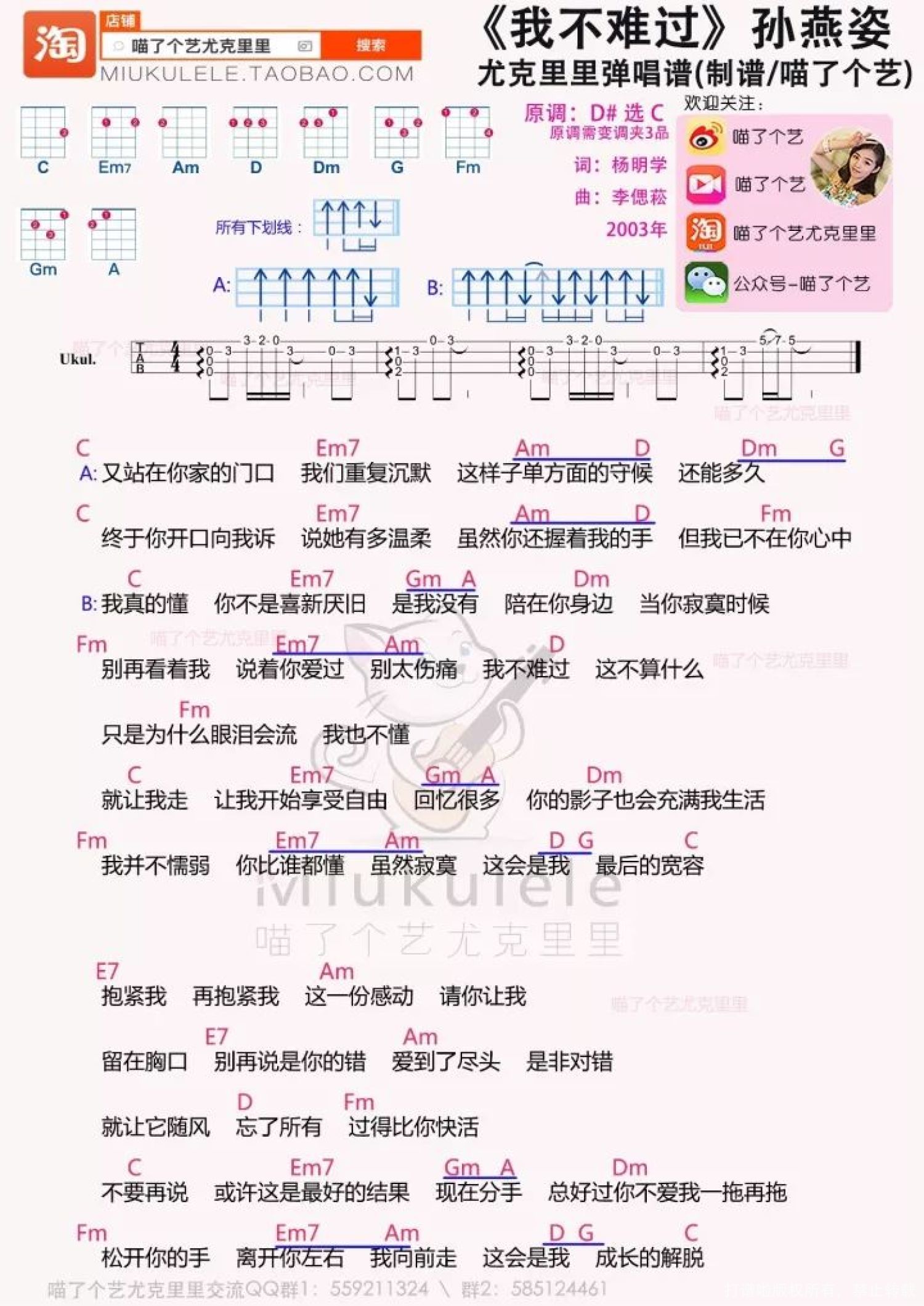 曲谱介绍: 《我不难过》尤克里里弹唱谱