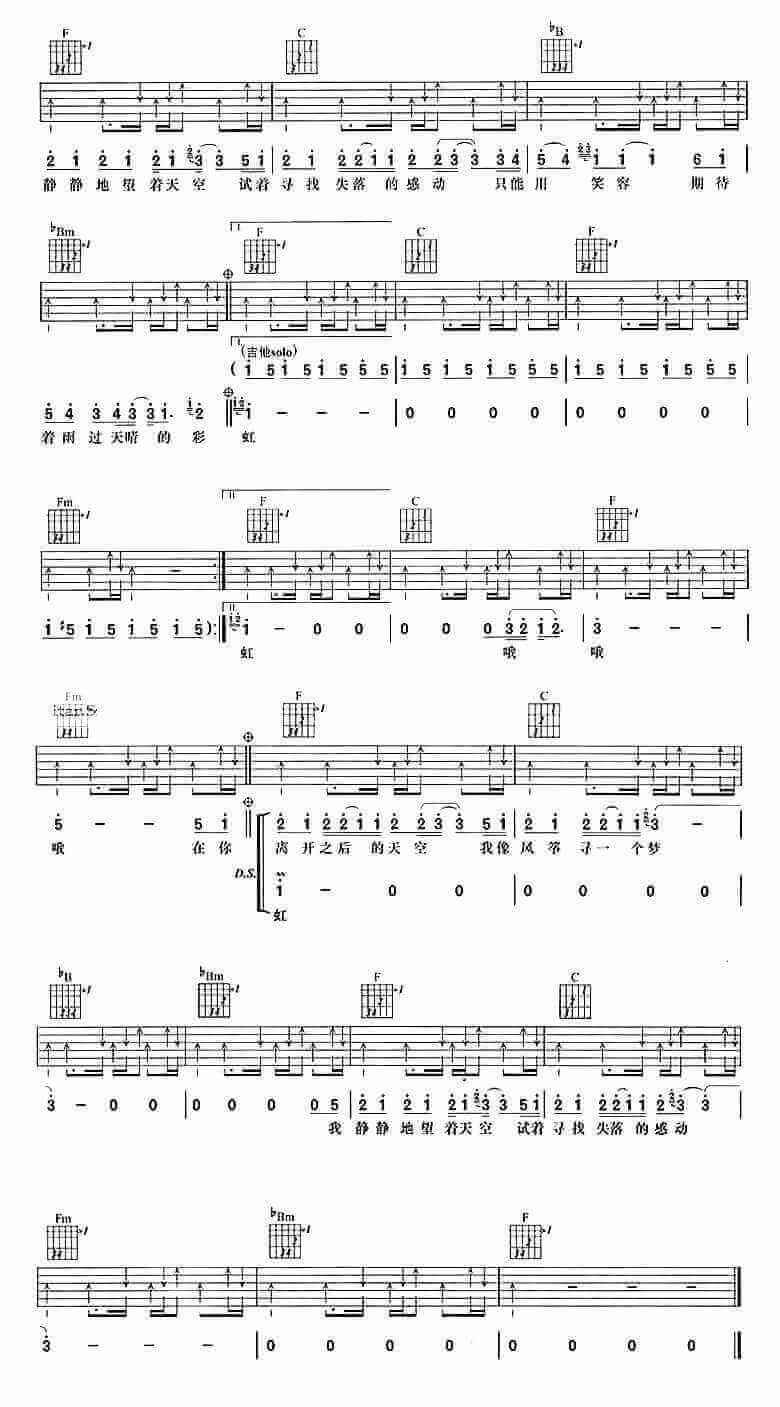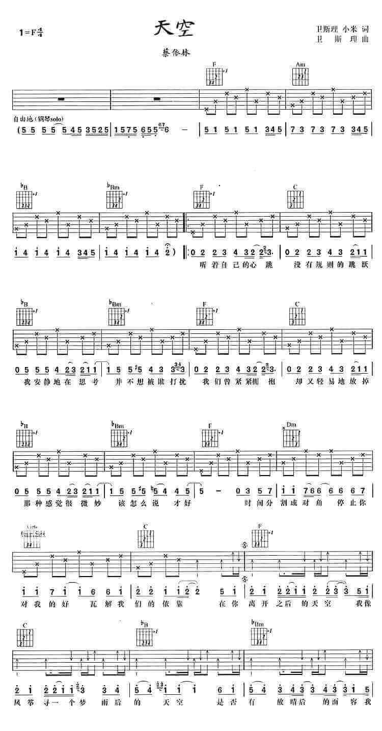 天空吉他谱 - F调吉他弹唱谱