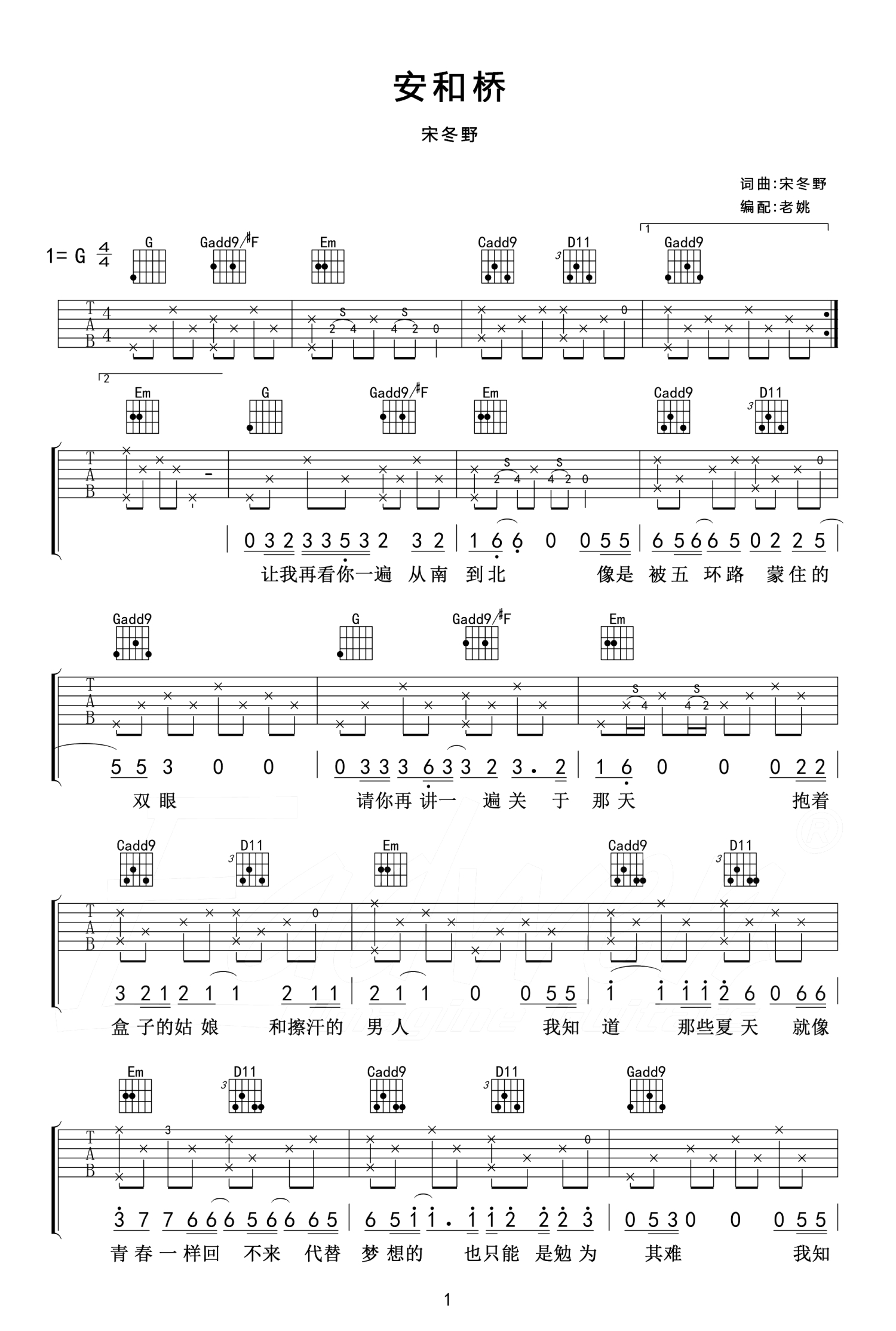 安和桥吉他谱 - 宋冬野 - 吉他弹唱谱