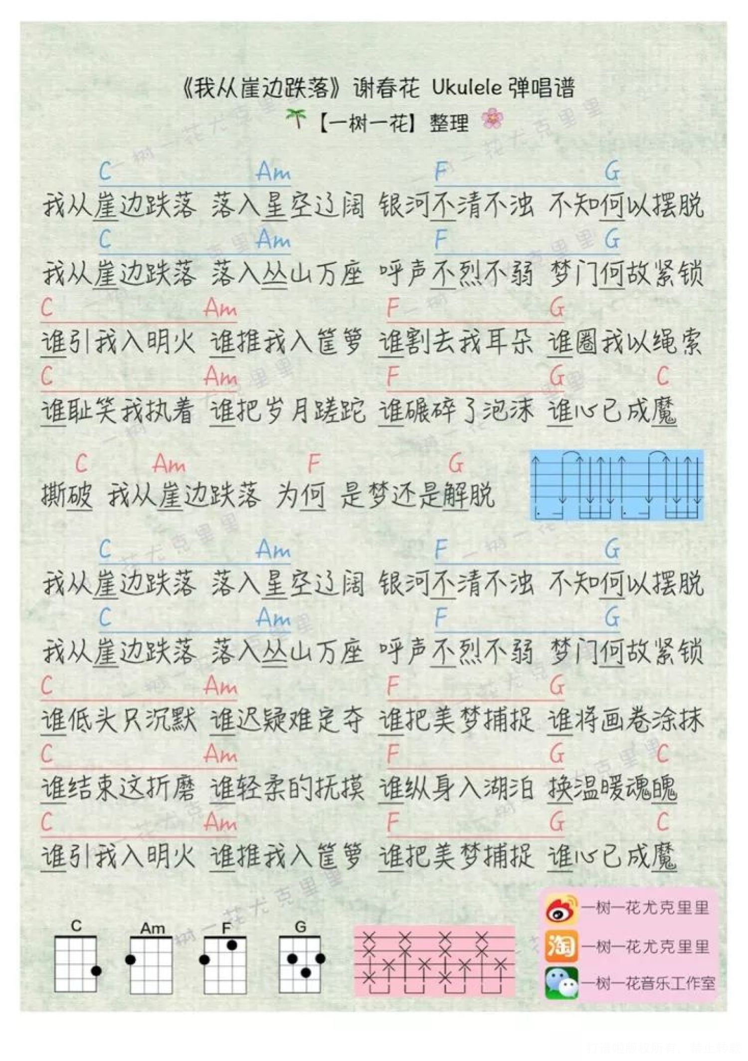曲谱介绍: 《我从崖边跌落》现场版 - 谢春花   我从崖边跌落 尤克里里谱