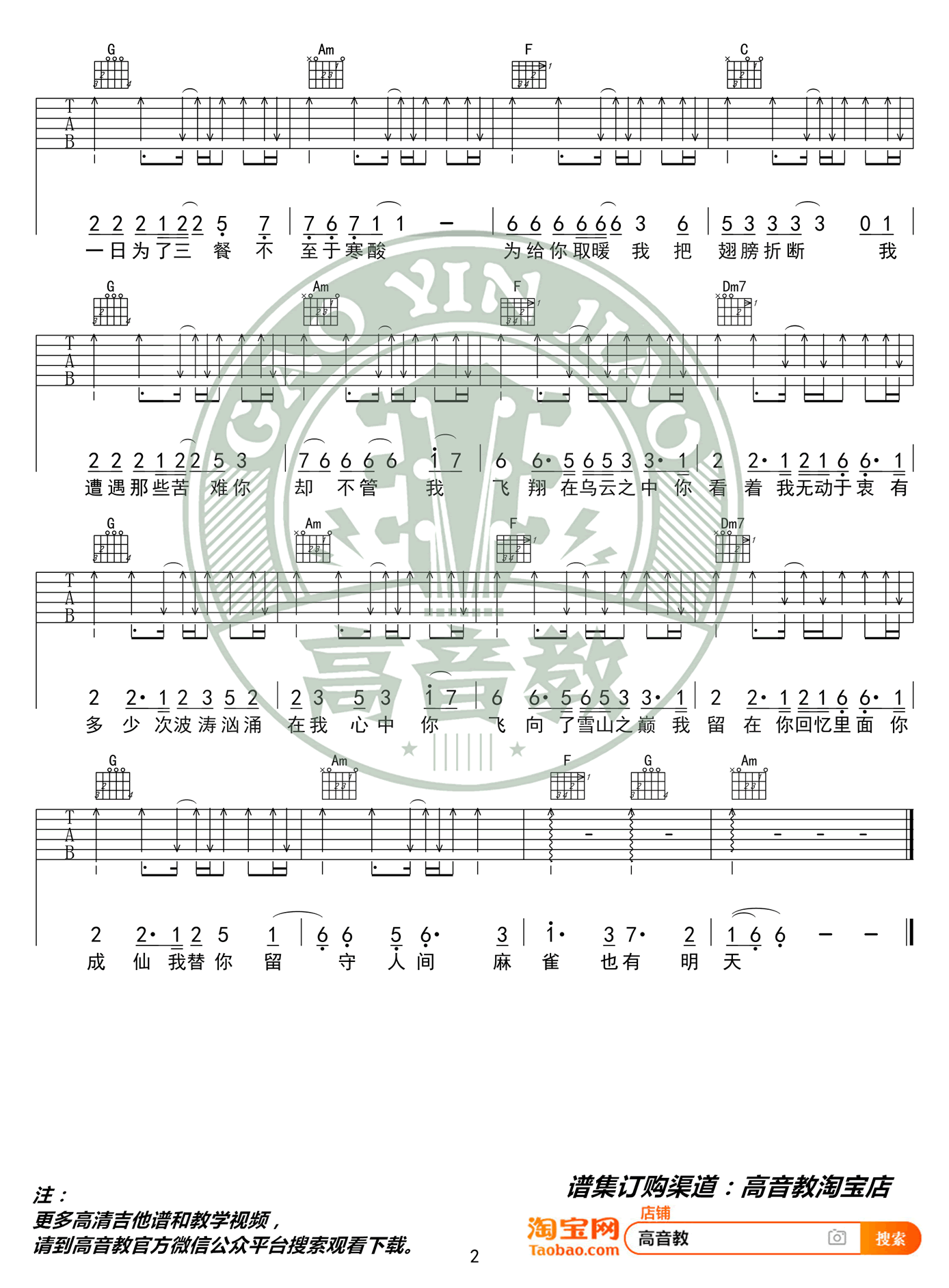 曲谱介绍: 《麻雀》吉他谱,李荣浩词曲创作演唱,麻雀吉他六线谱,原调F,C调指法精华版,变调夹夹五品。高音教编配出品,并带来吉他弹唱教学视频,琴谱网整理上传分享。