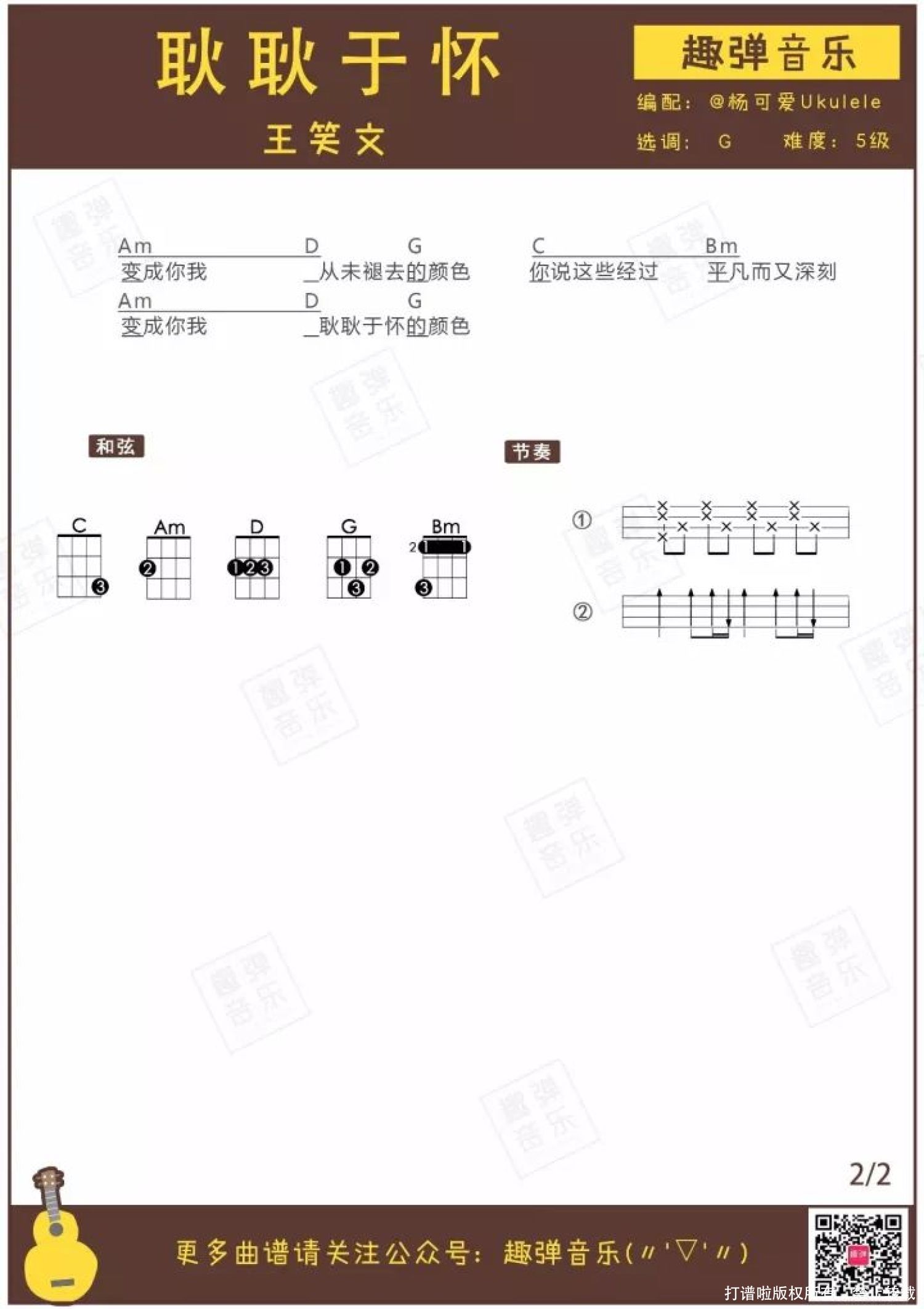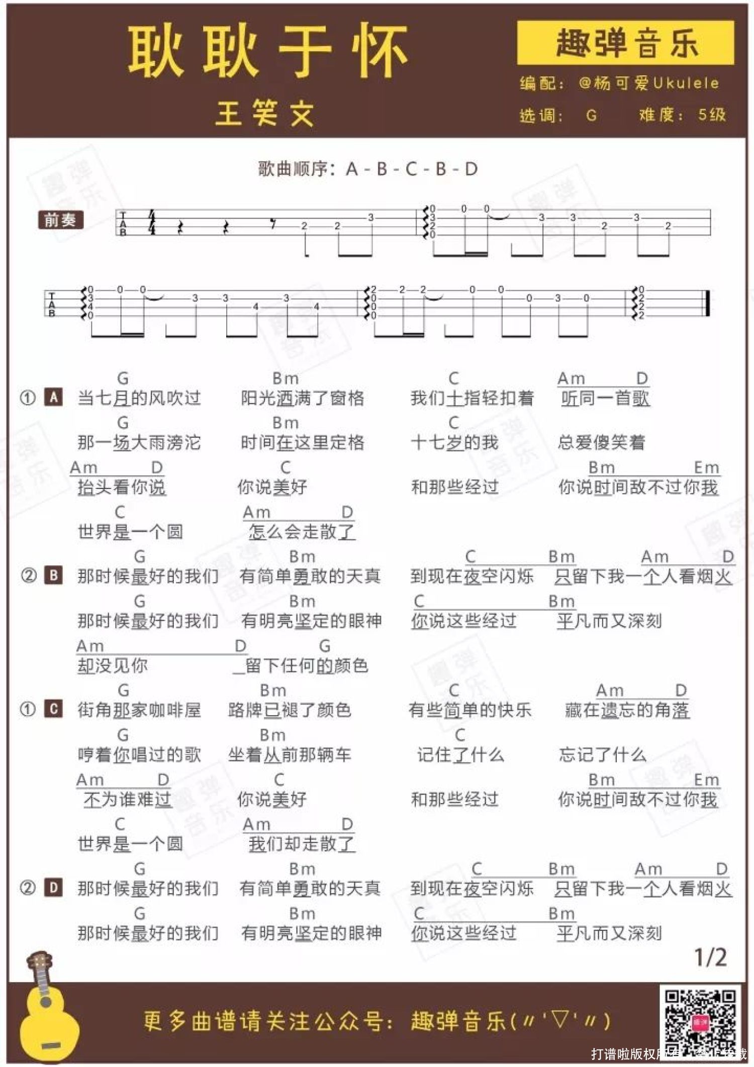 耿耿于怀尤克里里谱 - 王笑文