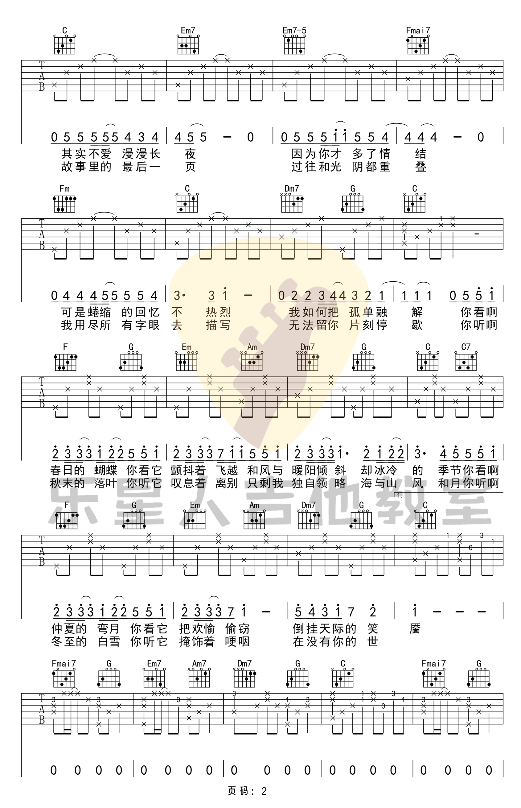 曲谱介绍: 冬眠吉他谱,司南演唱的一首冬日暖曲,选用C调弹唱,原版编配,女生建议变调夹夹五品,男生不用夹。冬眠六线谱,三张图片谱高清版,感谢乐星人吉他教室出品,琴谱网整理上传。