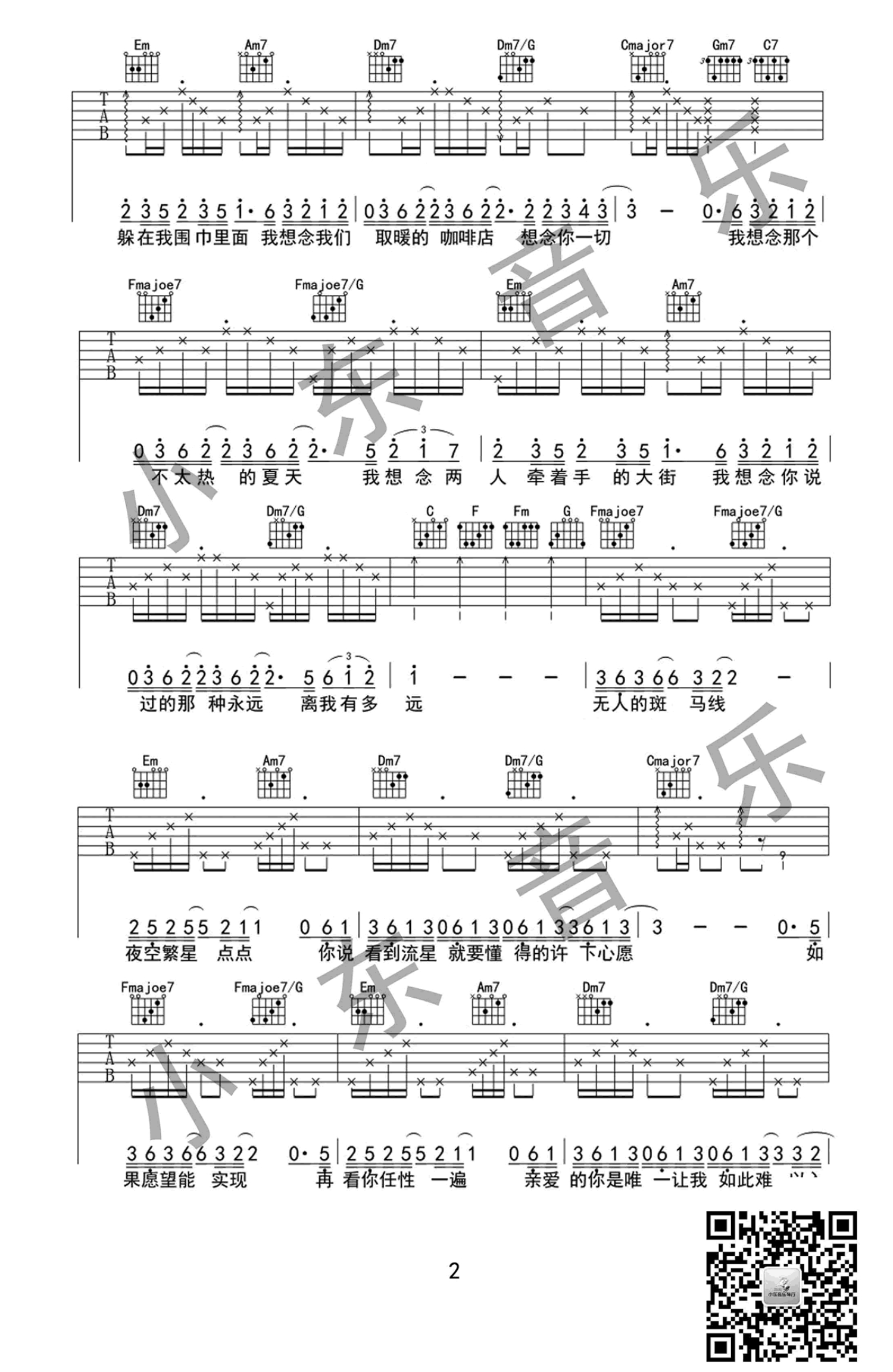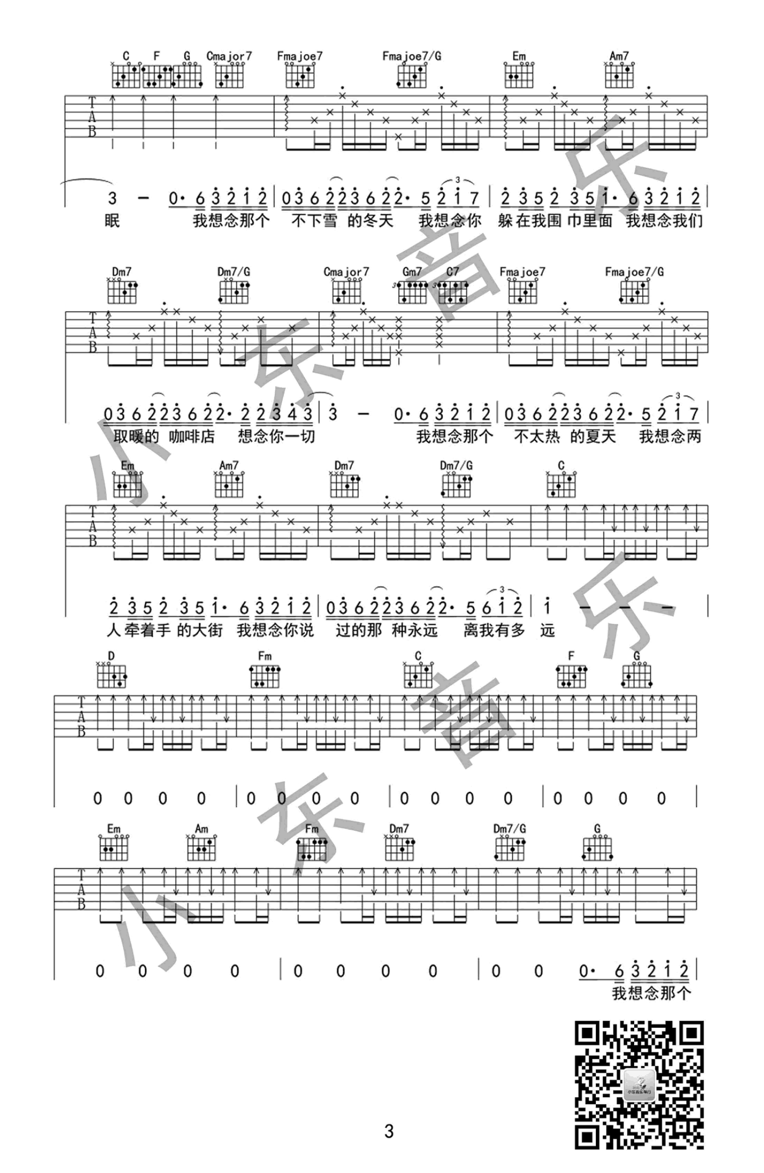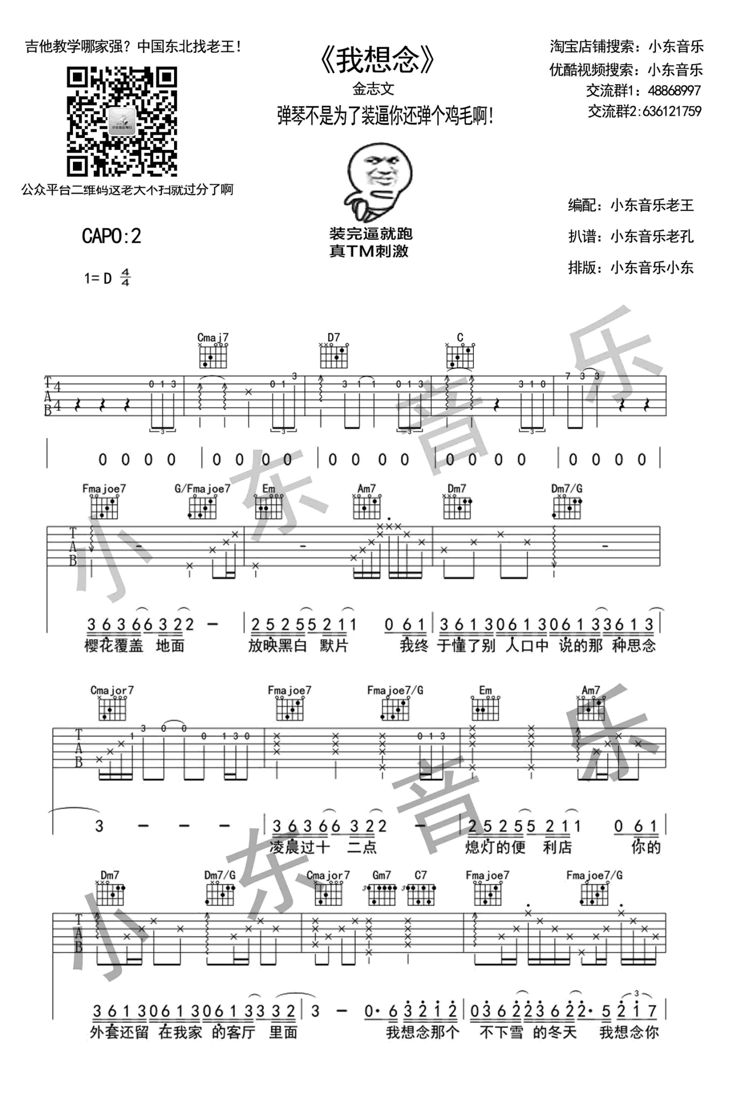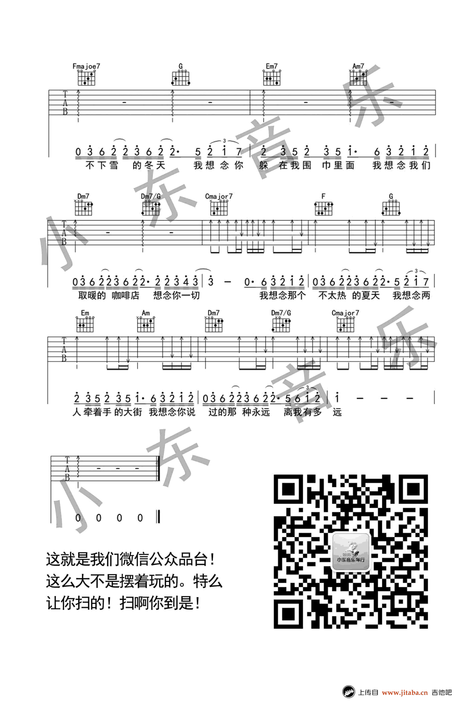 曲谱介绍: 金志文《我想念》吉他谱,青春偶像剧《夏至未至》插曲,汪苏泷词曲的一首唯美爱情歌曲。我想念吉他弹唱谱,变调夹夹二品,六线谱原版编配,你说过的那种永远,离我有多远?一首好听的歌曲,带给琴友们。想念的感觉在千回百转,面对爱而不得的人,却从不敢轻举妄动,最好的想念,也许就是不打扰你的世界。想念的味道在心口难开,烙印在记忆深处,寻着时光的弦音,把这份情感唱进了歌里。
