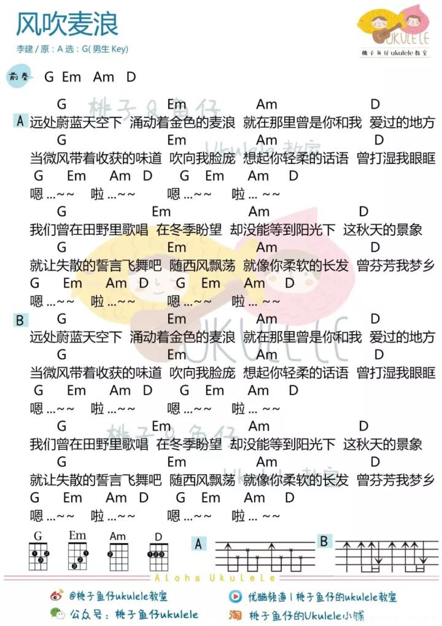 风吹麦浪尤克里里谱 - 李健