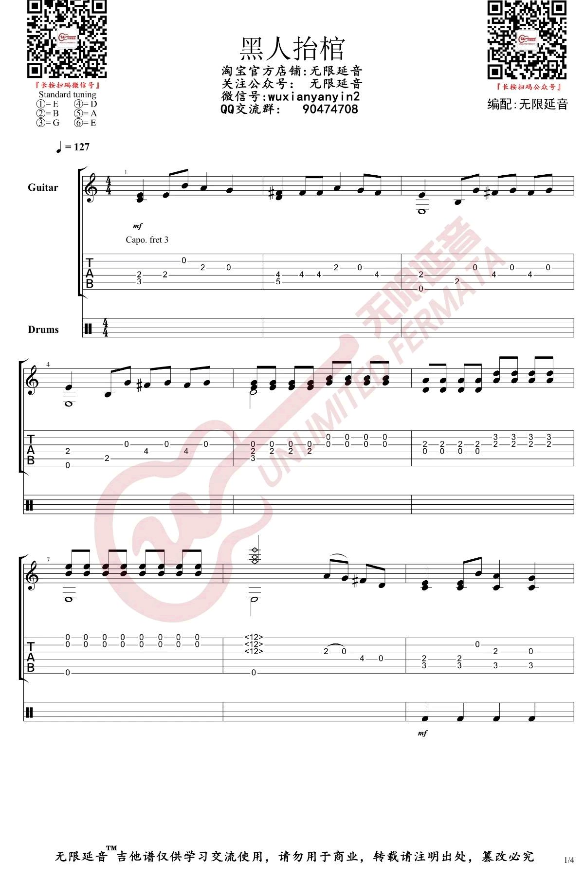 黑人抬棺吉他谱 - 抖音神曲BGM - 吉他独奏谱 - 原版