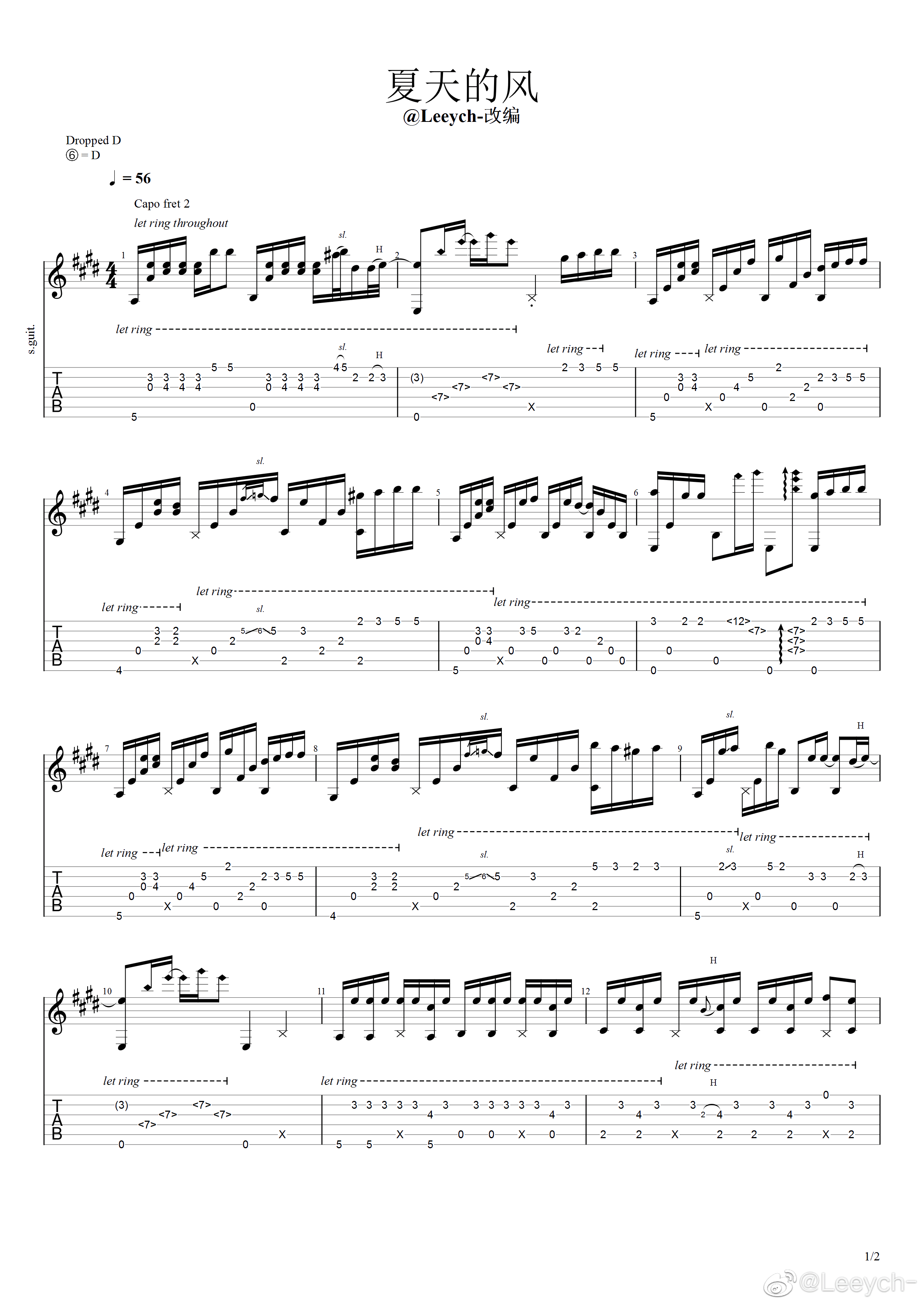曲谱介绍: 夏天的风指弹谱,温岚的代表作品改编,夏天的风吉他独奏谱,CAPO夹二品,两张高清图片谱例,感谢Leeych编配分享,琴谱网整理更新。