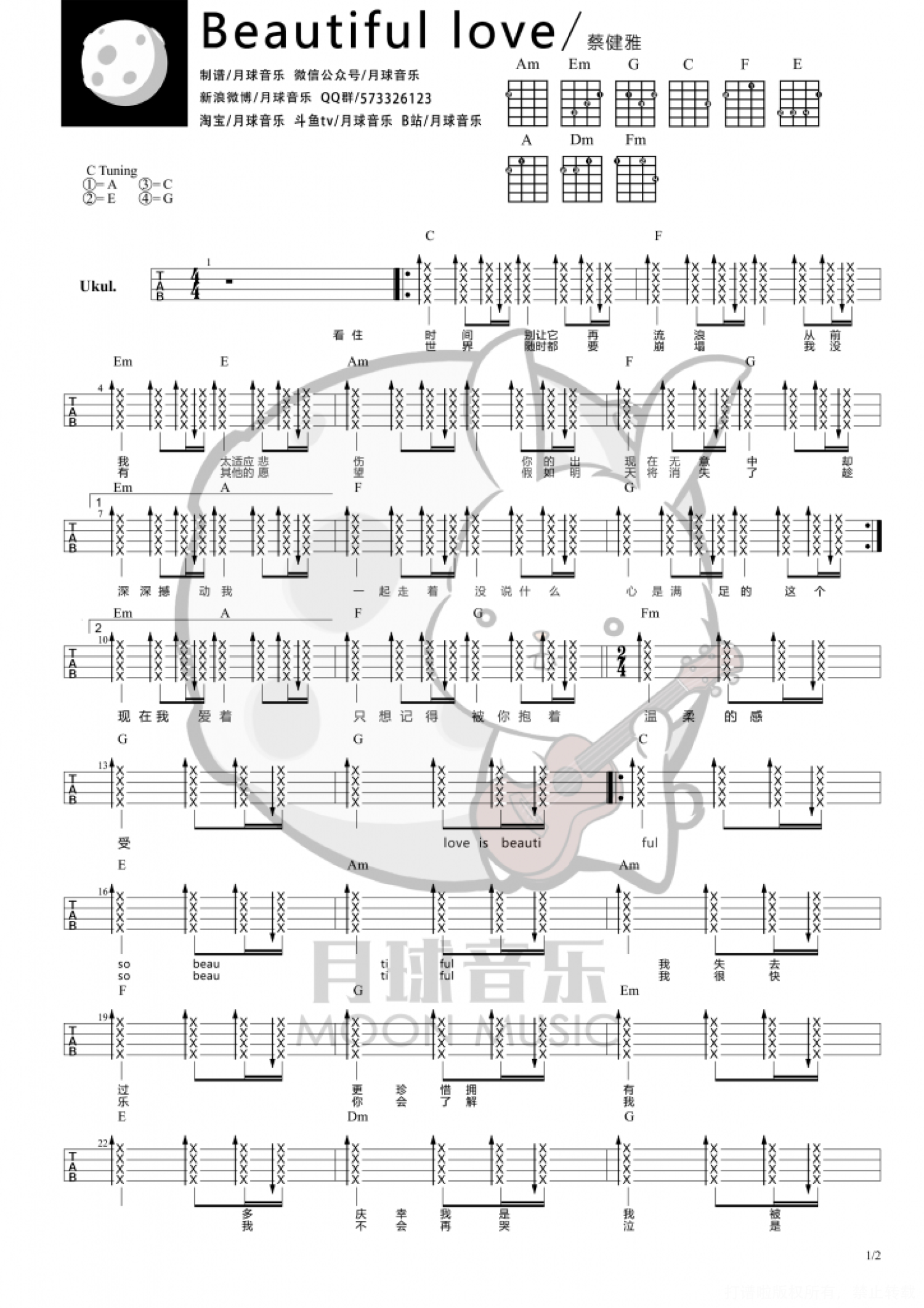 Beautiful love尤克里里谱 - 蔡健雅