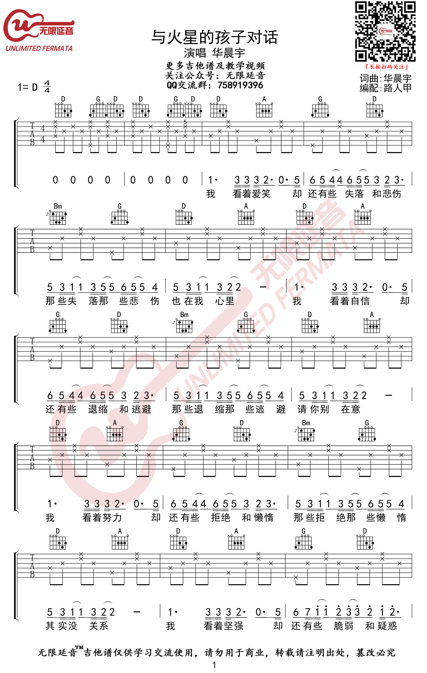 与火星的孩子对话吉他谱 - 华晨宇 - D调吉他弹唱谱