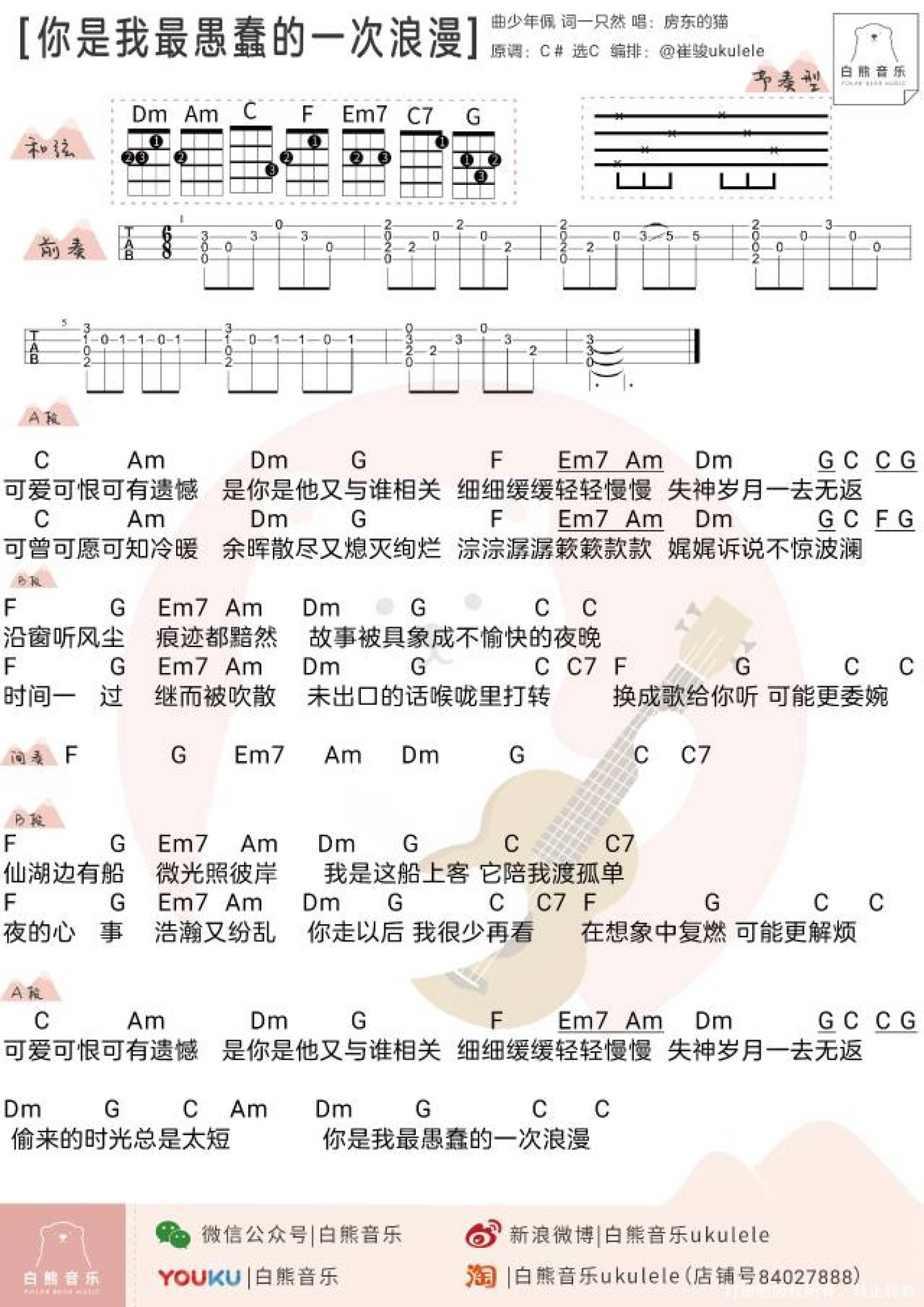 你是我最愚蠢的一次浪漫尤克里里谱 - 房东的猫