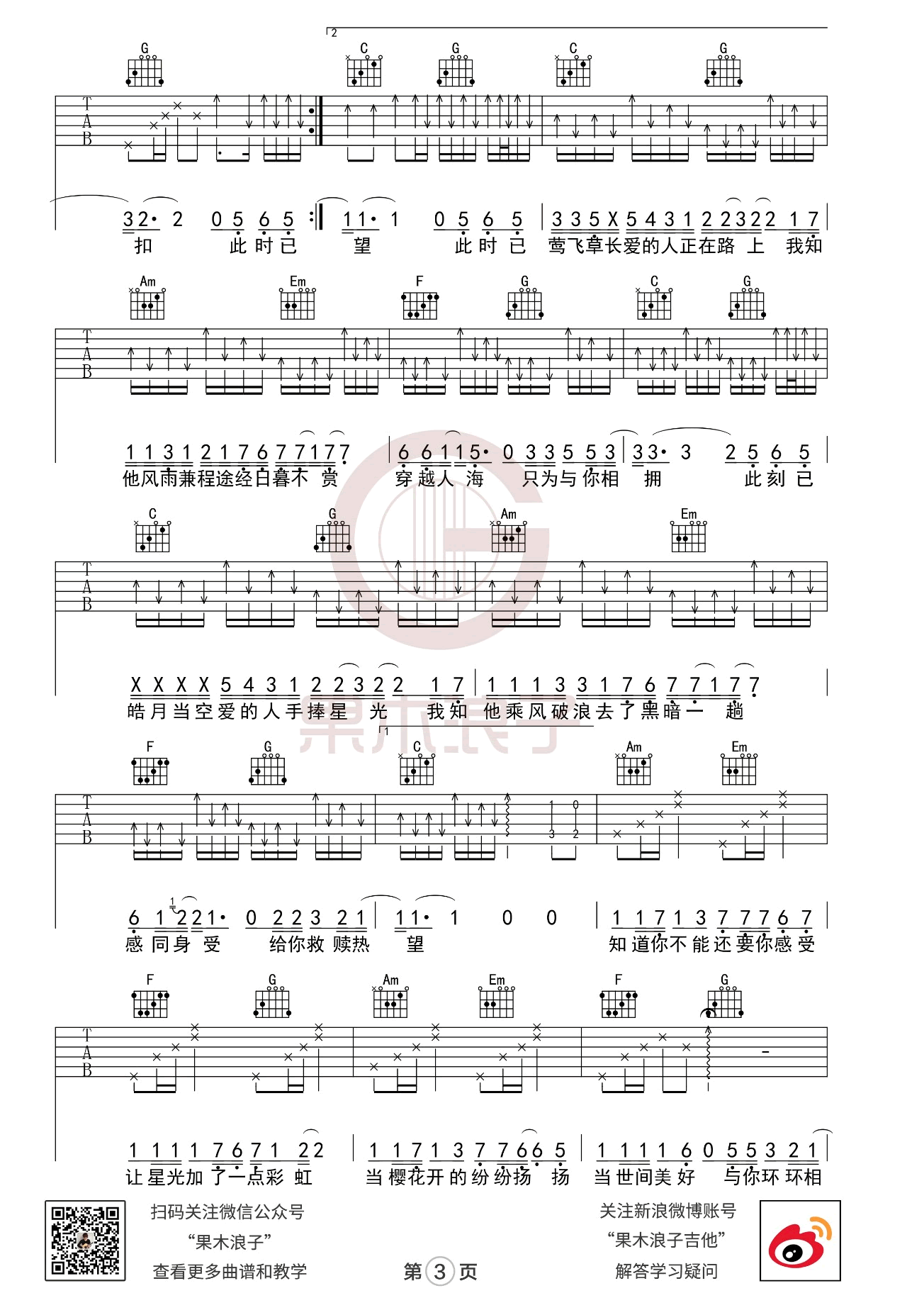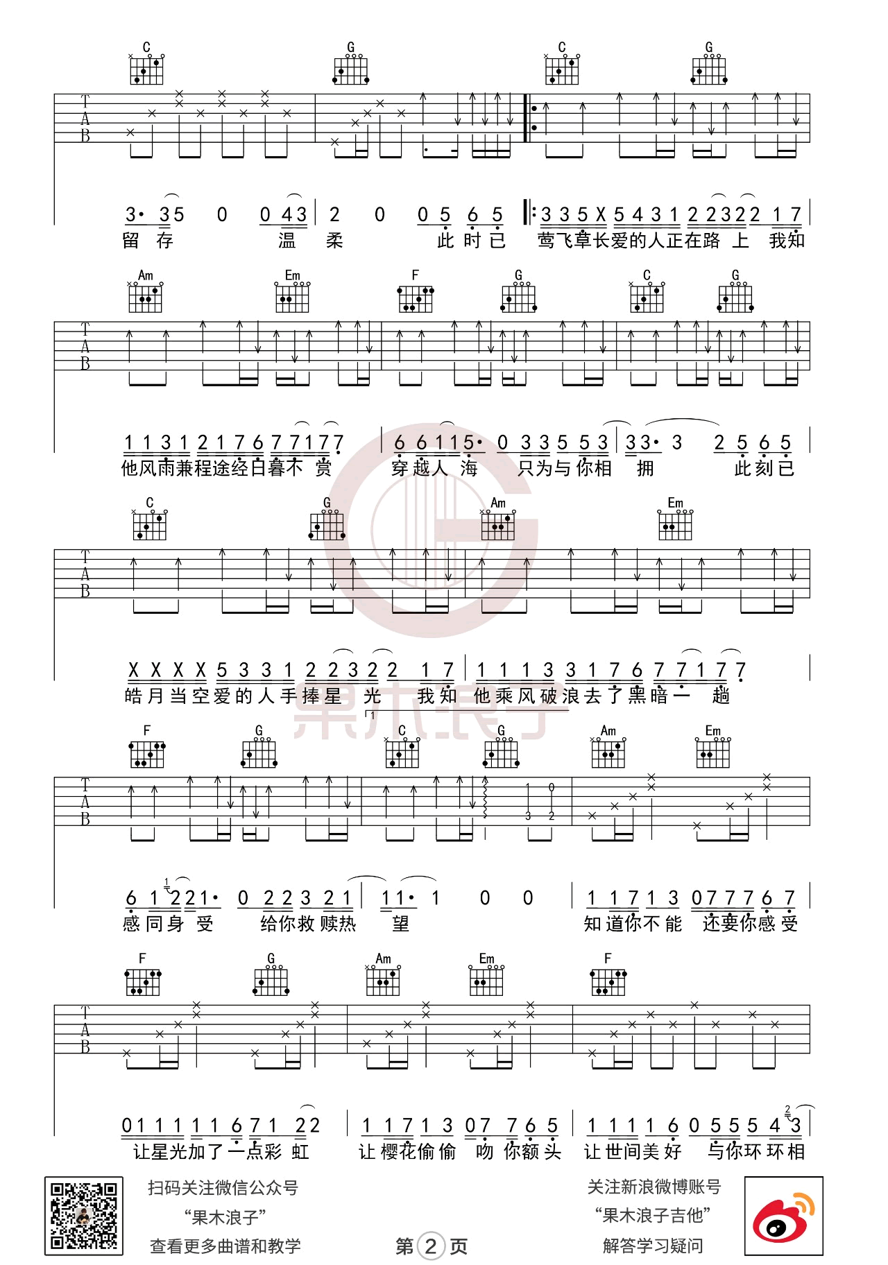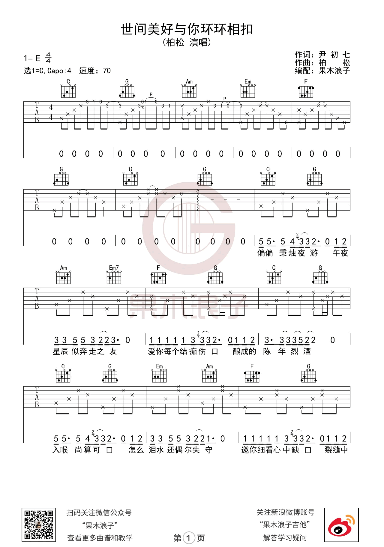 世间美好与你环环相扣吉他谱 - 果木浪子 - 吉他弹唱谱