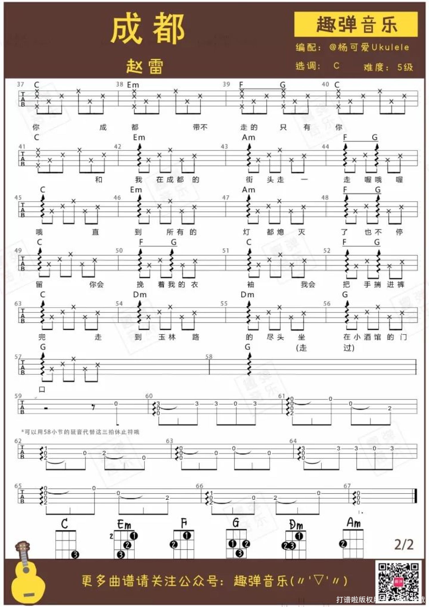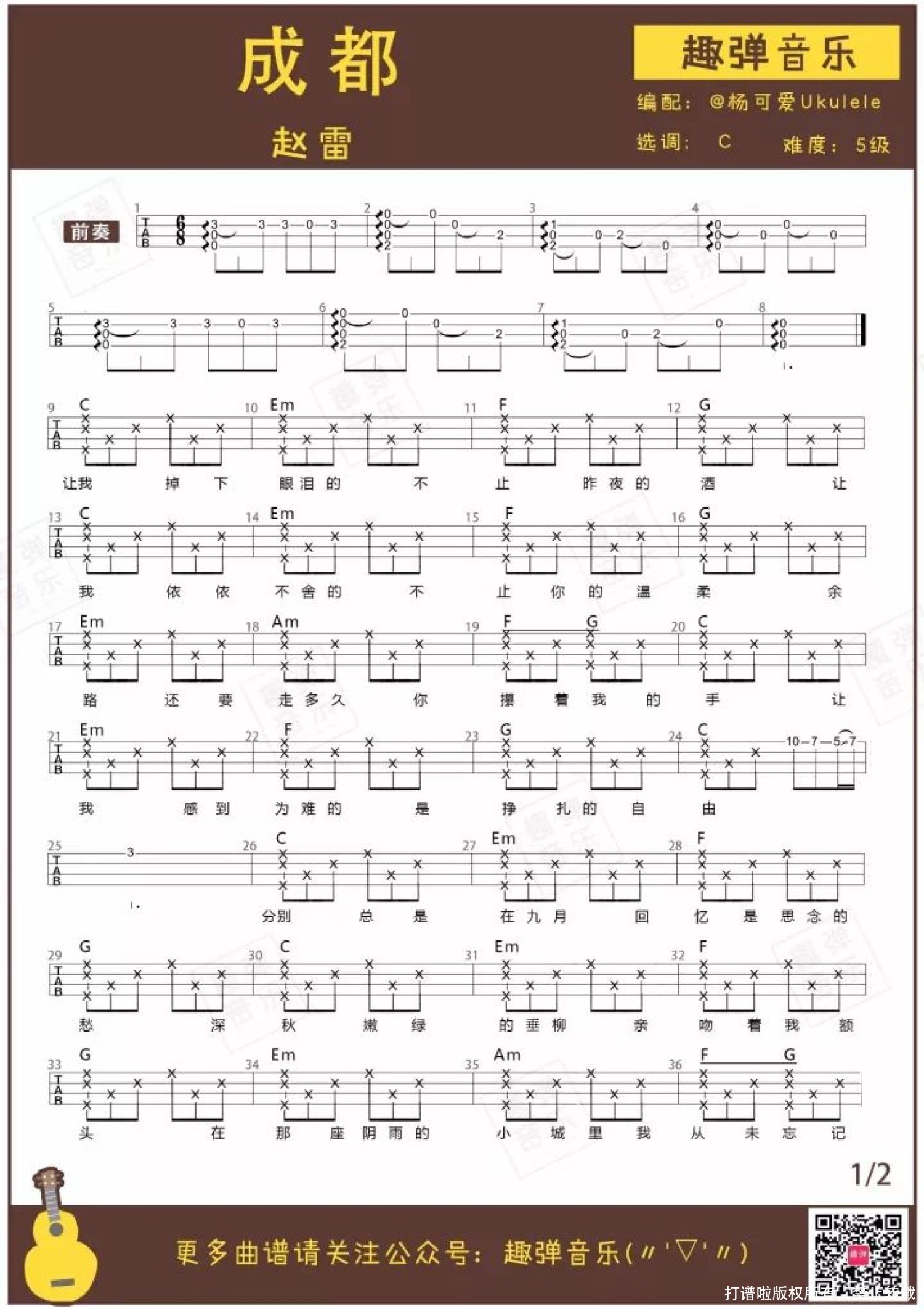 成都尤克里里谱 - 赵雷